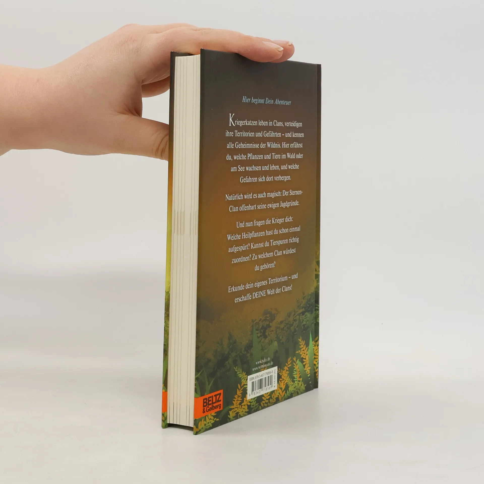 Dieses Buch ist so einmalig wie du, denn du gestaltest es mit! Hier erfährst du, welche Pflanzen und Tiere im Wald oder am See wachsen und leben, und welche Gefahren sich dort verbergen. Bei einer Tour durch die Lager entdeckst du, warum die Katzen gerade diesen Ort ausgewählt haben und was sie zum Fressen und Überleben brauchen. Und es wird magisch: Der SternenClan offenbart seine ewigen Jagdgründe. Dieses Buch regt an, selbst zu entdecken: Welche Heilpflanzen hast du schon einmal aufgespürt? Kannst du Tierspuren richtig zuordnen? Selbst zu entscheiden: Zu welchem Clan würdest du gehören? Und kreativ zu werden: Zeichne dein eigenes Territorium – und erschaffe DEINE Welt der Clans.