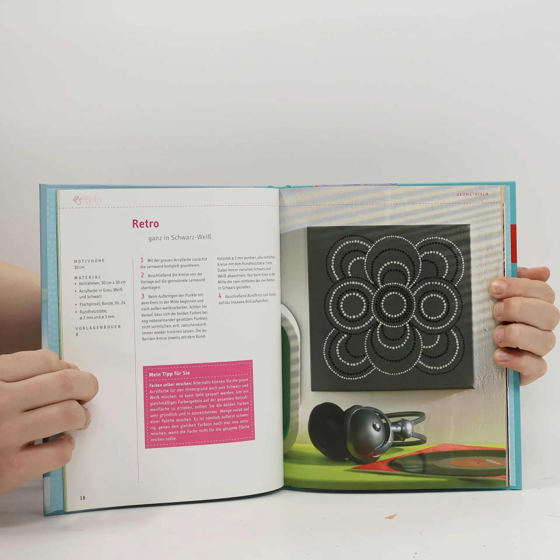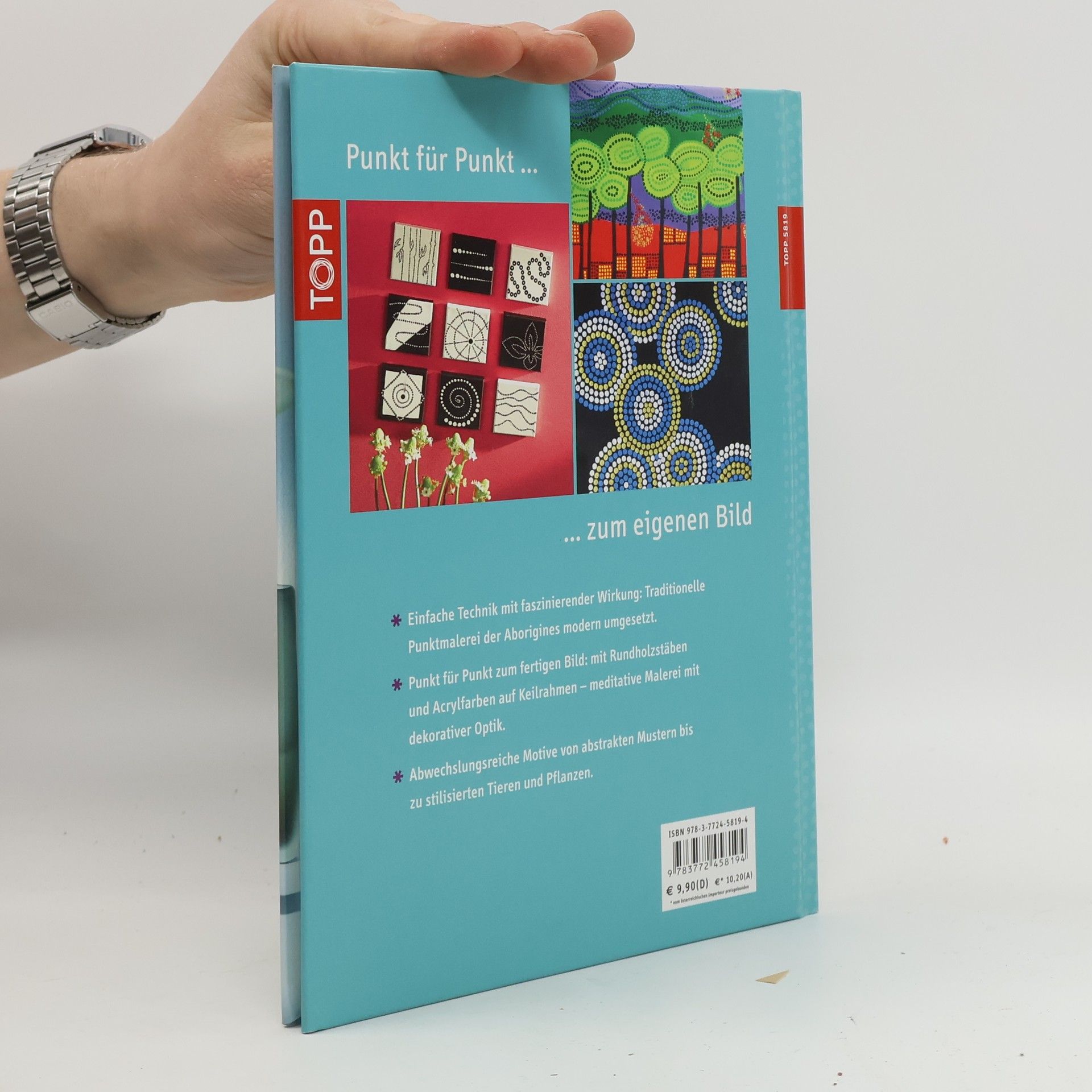 Einfache Technik mit faszinierender Wirkung: traditionelle Punktmalerei der Aboriginies modern umgesetzt. Punkt für Punkt zum fertigen Bild: mit Rundholzstäben und Acrylfarben auf Keilrahmen - meditative Malerei mit dekorativer Optik. Abwechslungsreiche Motive von abstrakten Mustern bis zu stilisierten Tieren und Pflanzen. Mit Vorlagen in Originalgröße. 48 Seiten, 17 x 22 cm, Hardcover, Vorlagenbogen