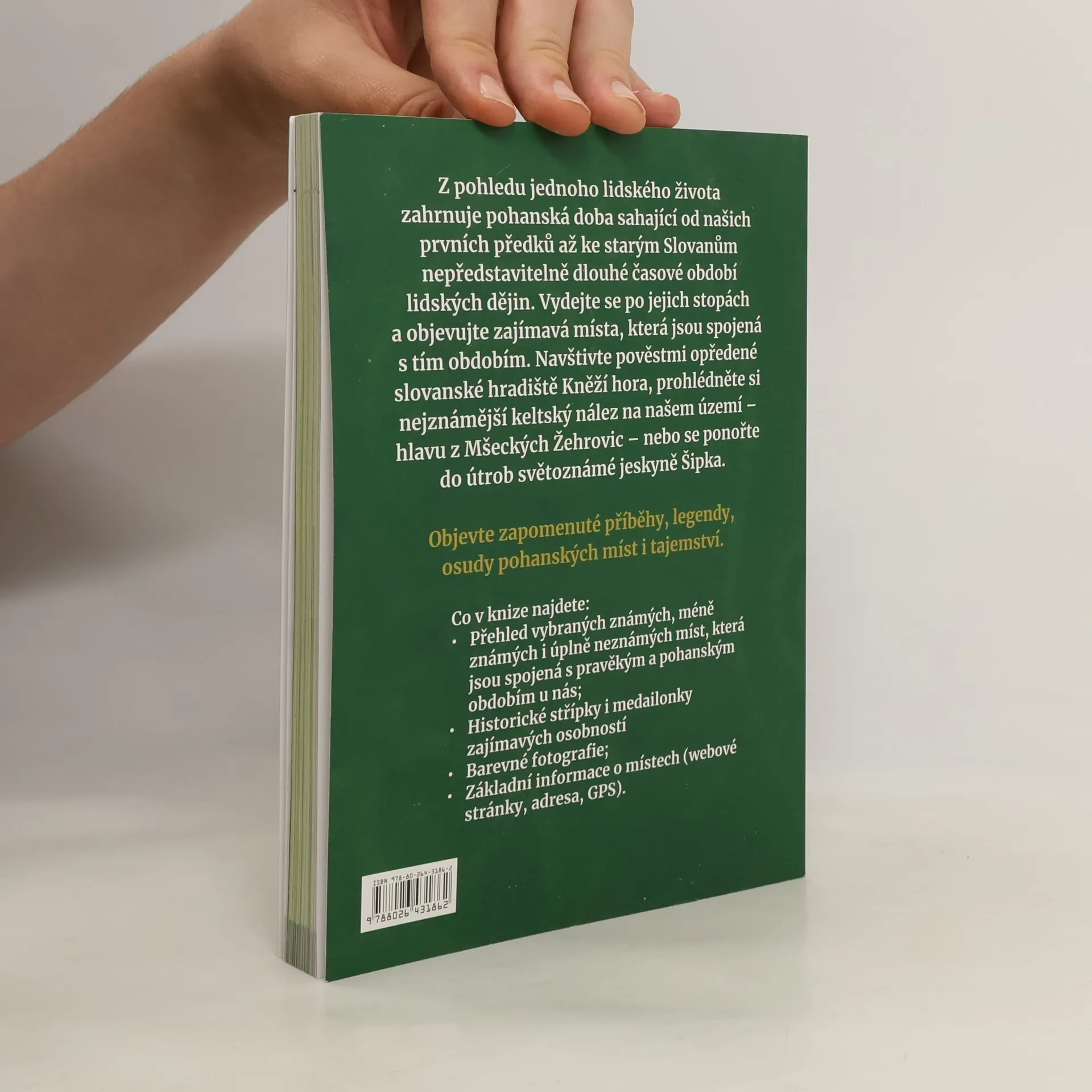 Z pohledu jednoho lidského života zahrnuje pohanská doba sahající od našich prvních předků až ke starým Slovanům nepředstavitelně dlouhé časové období lidských dějin. Vydejte se po jejich stopách a objevujte zajímavá místa, která jsou spojená s tím obdobím. Navštivte pověstmi opředené slovanské hradiště Kněží hora, prohlédněte si nejznámější keltský nález na našem území – hlavu z Mšeckých Žehrovic – nebo se ponořte do útrob světoznámé jeskyně Šipka. Objevte zapomenuté příběhy, legendy, osudy pohanských míst i tajemství. Co v knize najdete: • Přehled vybraných známých, méně známých i úplně neznámých míst, která jsou spojená s pravěkým a pohanským obdobím u nás • Historické střípky i medailonky zajímavých osobností • Barevné fotografie • Základní informace o místech (webové stránky, adresa, GPS).