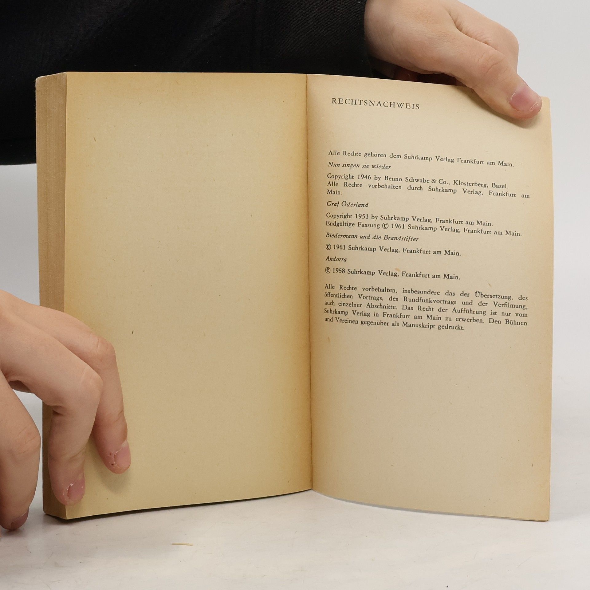 1. Nun singen sie wieder2. Graf Öderland3. Biedermann und die Brandstifter4. AndorraMit einem Nachwort von Juri Archipow: „Max Frisch auf der Suche nach der verlorenen Einheit“