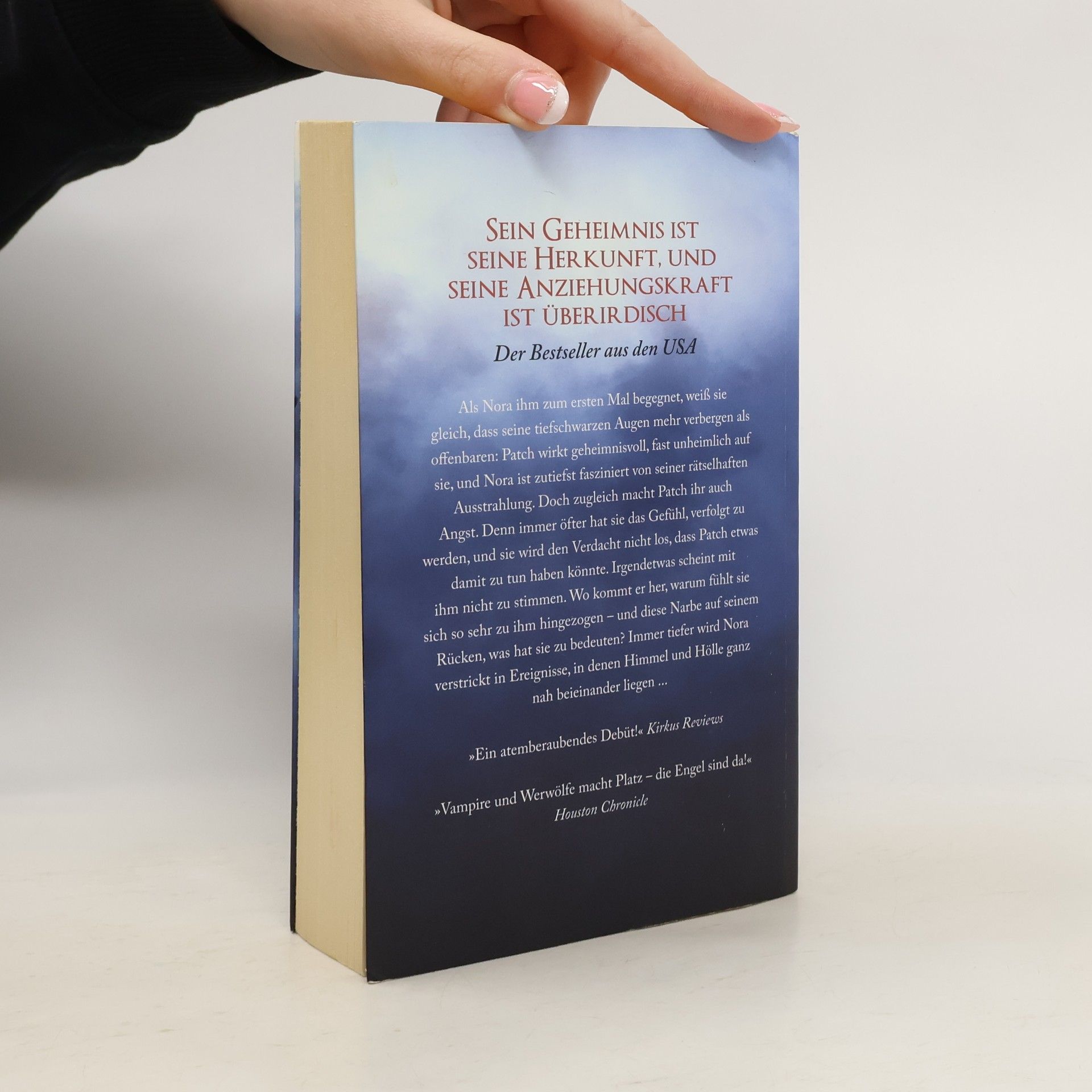 Der Himmel muss warten. Als Nora ihm zum ersten Mal begegnet, weiß sie gleich, dass seine tiefschwarzen Augen mehr verbergen als offenbaren: Patch wirkt geheimnisvoll, fast unheimlich auf sie, und Nora ist zutiefst fasziniert von seiner rätselhaften Ausstrahlung. Doch zugleich macht Patch ihr auch Angst. Denn immer öfter hat sie das Gefühl, verfolgt zu werden, und sie wird den Verdacht nicht los, dass Patch etwas damit zu tun haben könnte. Irgendetwas scheint mit ihm nicht zu stimmen. Wo kommt er her, warum fühlt sie sich so sehr zu ihm hingezogen - und diese Narbe auf seinem Rücken, was hat sie zu bedeuten? Immer tiefer wird Nora verstrickt in Ereignisse, in denen Himmel und Hölle ganz nah beieinander liegen.