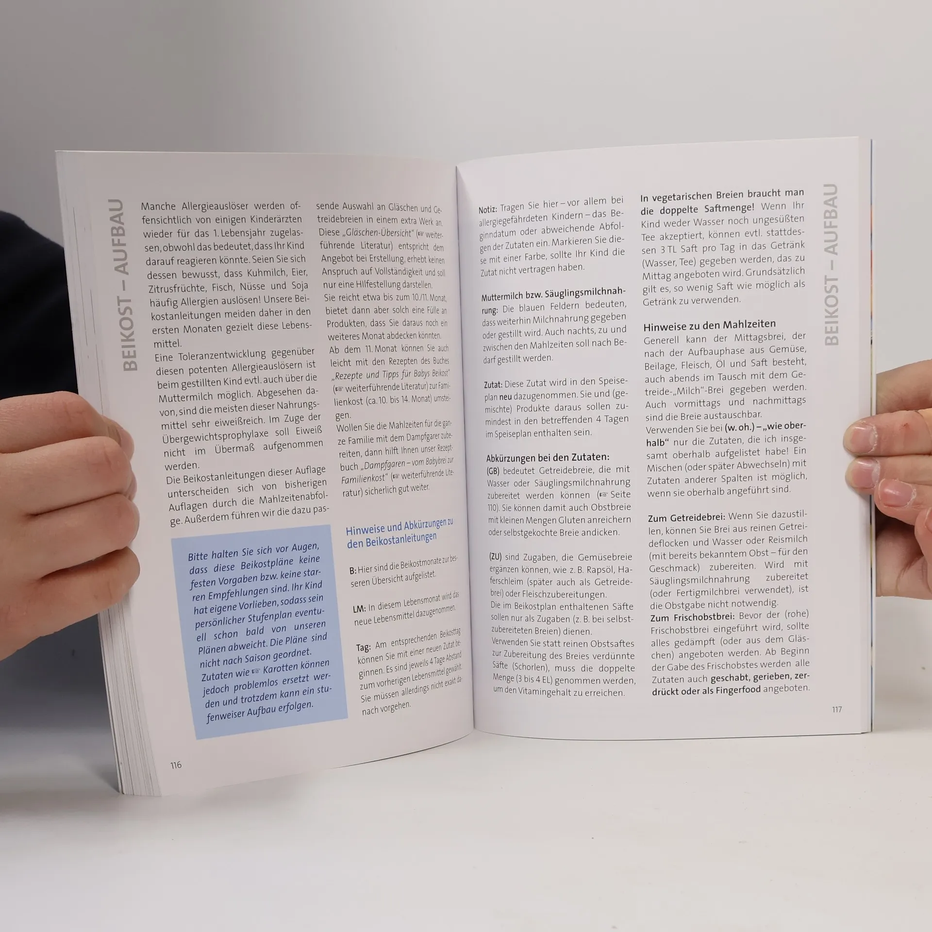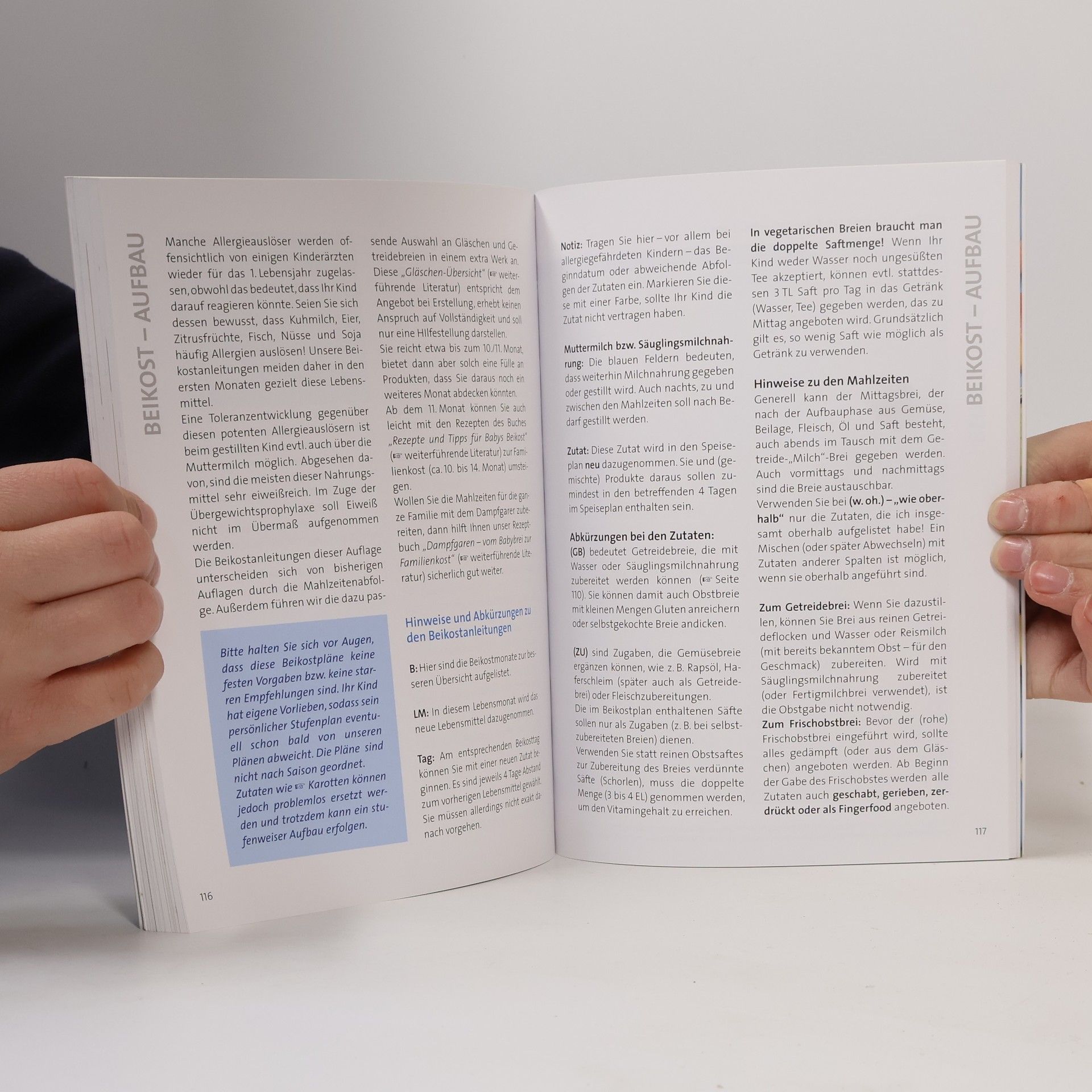 Unser Handbuch begleitet Sie und Ihr Baby nach den neuen Beikostrichtlinien durch die spannende Phase des Essenlernens. Es beantwortet Fragen zur Säuglingsernährung, unterstützt Sie bei der Auswahl von Flaschenkost und versorgt Sie ab dem 5. Monat Woche für Woche mit Beikostanleitungen. Es bietet Hilfestellung bei BLW (Baby led weaning). • Muttermilch bzw. Fläschchen - was ist jeweils zu beachten? • Wann ist eigentlich der richtige Zeitpunkt für den Beikostbeginn? • Darf ich mein Baby fleischlos ernähren?