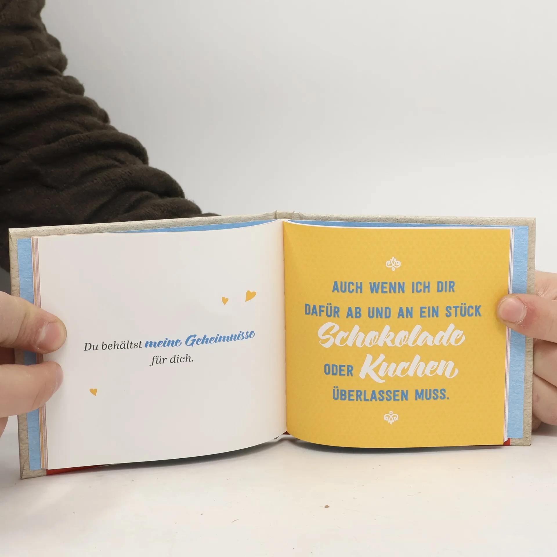 Modernes Mini-Buch für tolle Schwestern Die Beziehung zu unserer Schwester ist eine ganz besondere: Sie kennt uns in- und auswendig, ist ein wichtiger Teil unseres Lebens und doch streiten wir uns immer mal wieder miteinander. Wir teilen Geheimnisse und Erinnerungen, die nur wir verstehen. Und wenn wir uns gut vertragen, bilden wir ein Bündnis gegen den Rest der Welt. Mit diesem witzigen Geschenkbuch im Miniformat sagen Sie Ihrer Schwester: „Schön, dass es dich gibt.“ Komplimente an Ihre Schwester Dieses tolle Büchlein ist ein fantastisches Geschenk zu vielen Gelegenheiten. Es setzt sich aus rein typografischer Gestaltung, netten Komplimenten und Familiensituationen zusammen, die dann auf humorvolle Weise aufgelöst werden. Modern und frisch! Handliches Mini-Geschenkbuch für die Schwester Rein typografisch gestaltete Kurztexte Trendige, zeitgemäße Optik Mit aufrichtigen Komplimenten und bekannten Situationen aus dem Alltag Kleines Geschenk für viele Anlässe, z. B. Geburtstag, Weihnachten oder zwischendurch Für mein Schwesterherz Dieses Büchlein ist das perfekte Mitbringsel für alle, die ihrer Schwester auf witzige Weise zeigen wollen, wie gerne man sie hat. Über die dargestellten aus dem Leben gegriffenen Familiensituationen werden Sie garantiert auch gemeinsam lachen.