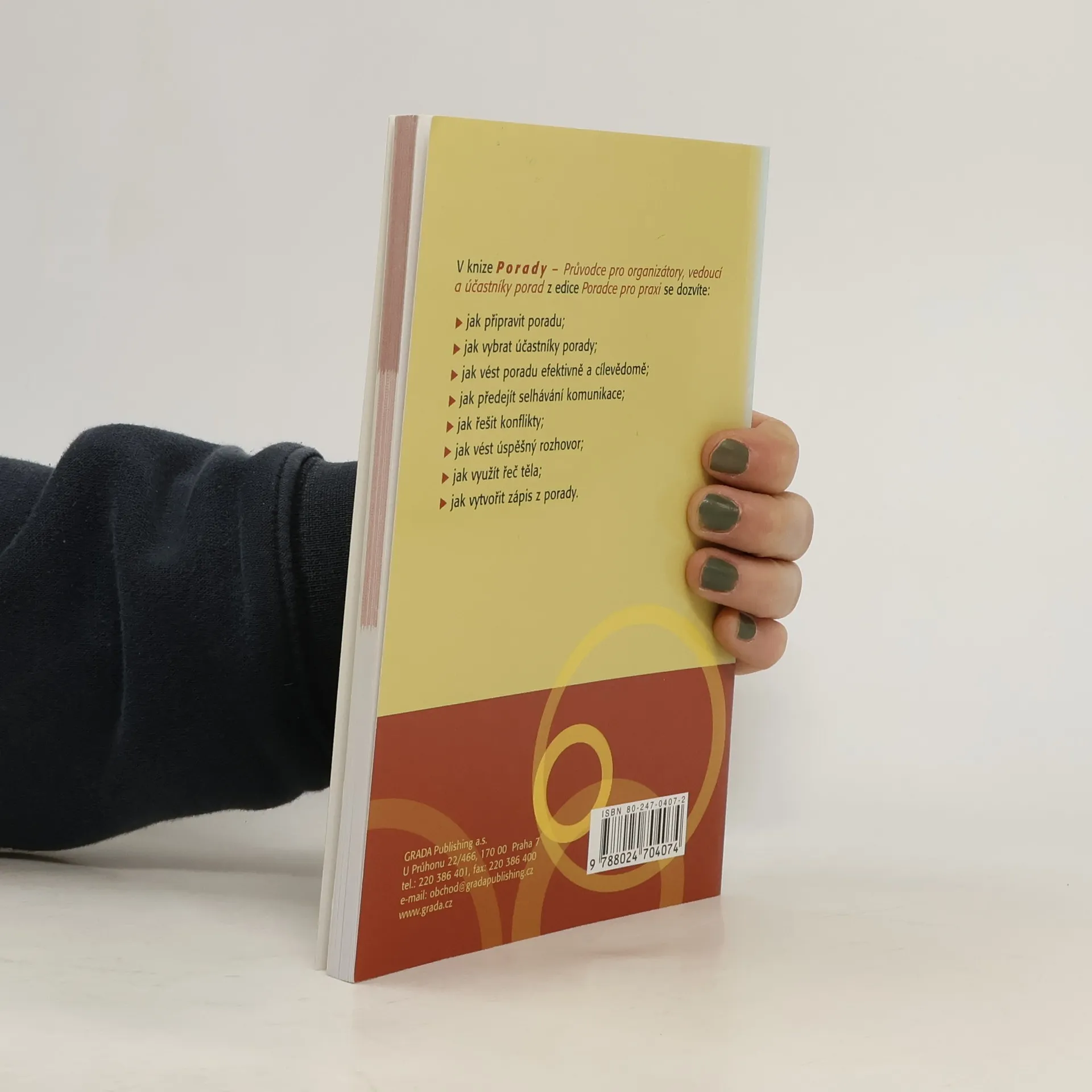 Jak připravit porady a vést je? Jak předejít selhávání komunikace a konfliktům? Publikace popisuje přípravu porad od formulování cílů a určení okruhu účastníků přes jejich vedení s využitím brainstormingu až k zápisu z porady. V knize PORADY - Průvodce pro organizátory, vedoucí a účastníky porad z edice Poradce pro praxi se dozvíte: - jak připravit poradu; - jak vybrat účastníky porady; - jak vést poradu efektivně a cílevědomě; - jak předejít selhávání komunikace; - jak řešit konflikty; - jak vést úspěšných rozhovor; - jak využít řeč těla; - jak vytvořit zápis z porady