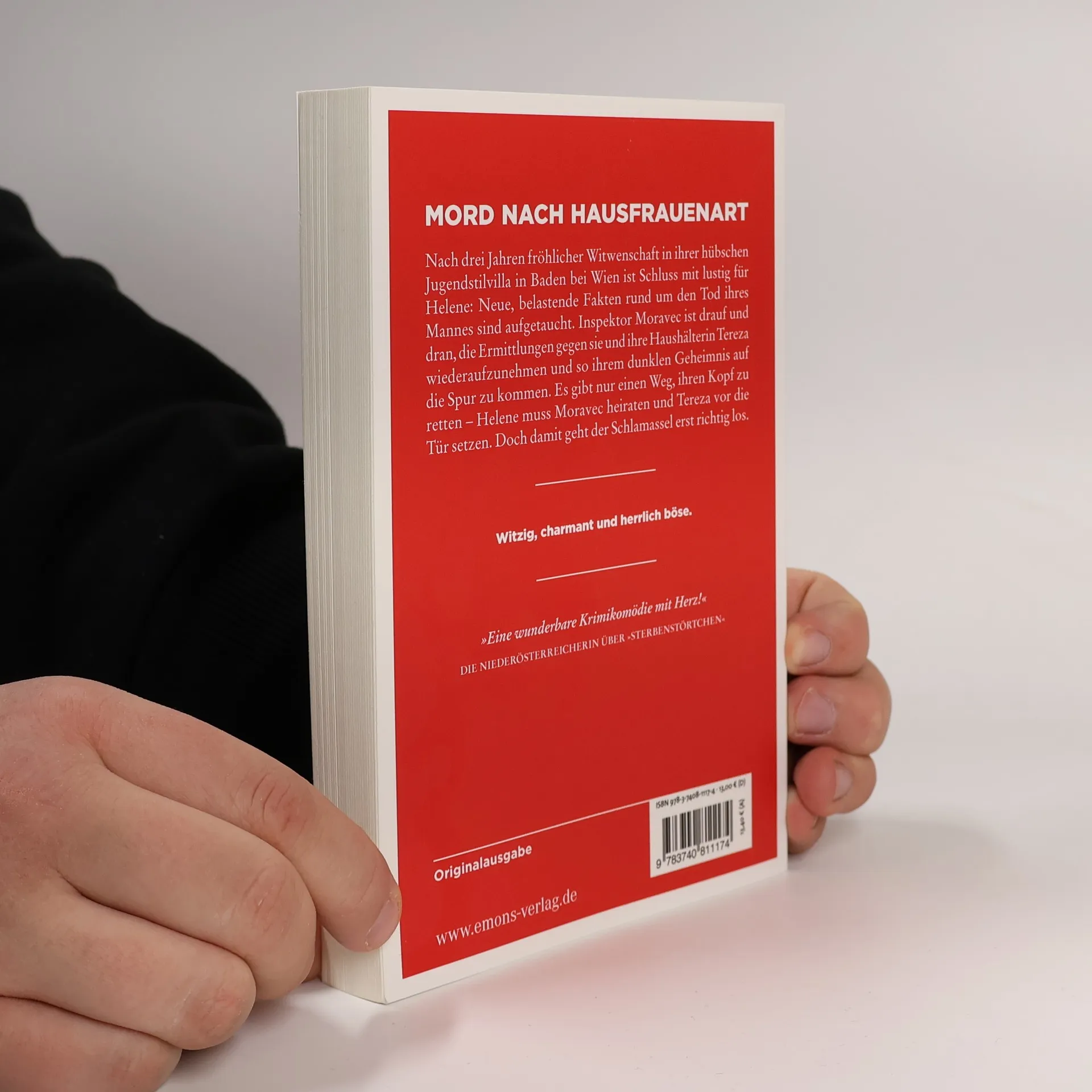 Eine bitterböse Krimifarce mit viel weiblichem Charme und irrwitzigen Wendungen. Nach drei Jahren fröhlicher Witwenschaft in ihrer hübschen Jugendstilvilla in Baden bei Wien ist Schluss mit lustig für Helene: Neue, belastende Fakten rund um den Tod ihres Mannes sind aufgetaucht. Inspektor Moravec ist drauf und dran, die Ermittlungen gegen sie und ihre Haushälterin Tereza wiederaufzunehmen und so ihrem dunklen Geheimnis auf die Spur zu kommen. Es gibt nur einen Weg, ihren Kopf zu retten – Helene muss Moravec heiraten und Tereza vor die Tür setzen. Doch damit geht der Schlamassel erst richtig los.
