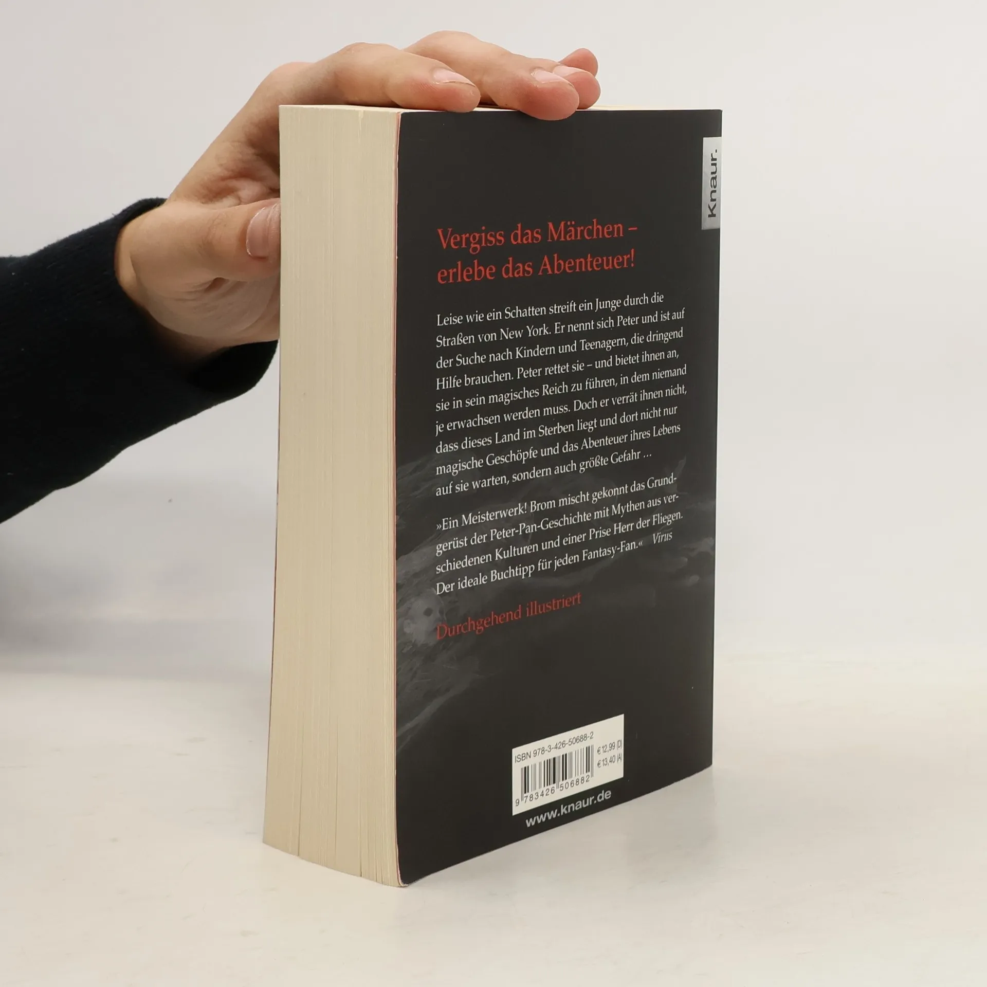 Leise wie ein Schatten streift ein Junge durch die Straßen von New York. Er nennt sich Peter und ist auf der Suche nach Kindern und Teenagern, die dringend Hilfe brauchen. Peter rettet sie – und bietet ihnen an, sie in sein magisches Reich zu führen, in dem niemand je erwachsen werden muss. Doch er verrät ihnen nicht, dass dieses Land im Sterben liegt und dort nicht nur magische Geschöpfe und das Abenteuer ihres Lebens auf sie warten, sondern auch größte Gefahr … »Brom hat mit „Der Kinderdieb“ ein Meisterwerk der phantastischen Literatur erschaffen! Er mischt gekonnt das Grundgerüst der Peter-Pan-Geschichte mit Mythen aus verschiedenen Kulturen und einer Prise „Herr der Fliegen“. Der ideale Buchtipp für jeden Fantasy-Horror-Fan.« Virus