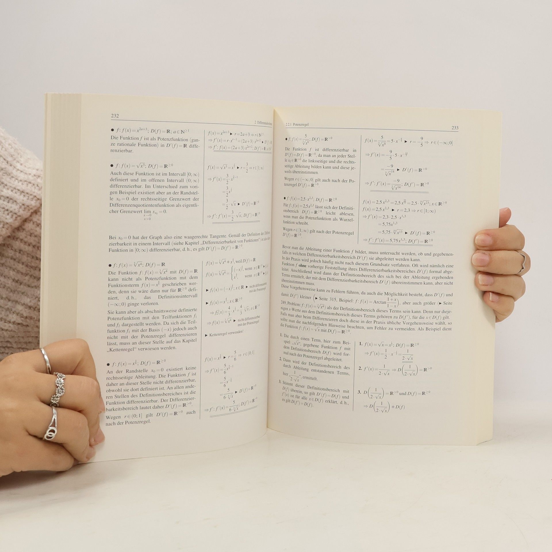 9. Auflage, 1993Der Band behandelt Inhalte der Differentialrechnung, wie sie Studenten an Fachhochschulen, Technischen Hochschulen und Universitäten benötigen. Wesentliche Inhalte sind auch Gegenstand der Sekundarstufe II der Gymnasien, wo dieses Buch als Repetitorium dienen kann. Der Band ist besonders zum Selbstunterricht geeignet. Inhalt: Funktionsarten, Funktionseigenschaften; Potenz-, Konstanten-, Faktor-, Summen-, Produkt-, Quotienten-, Ketten-, Umkehrregel; Differentiation trigonometrischer Funktionen sowie von Exponential-, Logarithmus-, Arkus-, Hyperbel- und Areahyberpelfunktionen; Folgen, Funktionsreihen; Kurvendiskussion, Maxima-Minima-Probleme; Tabellen von Funktionen, Ableitungen und Reihen.550 Beispiele mit ausführlichen Lösungswegen, 400 zweifarbige Abbildungen, 190 Merksätze und 1.600 Übungsaufgaben.