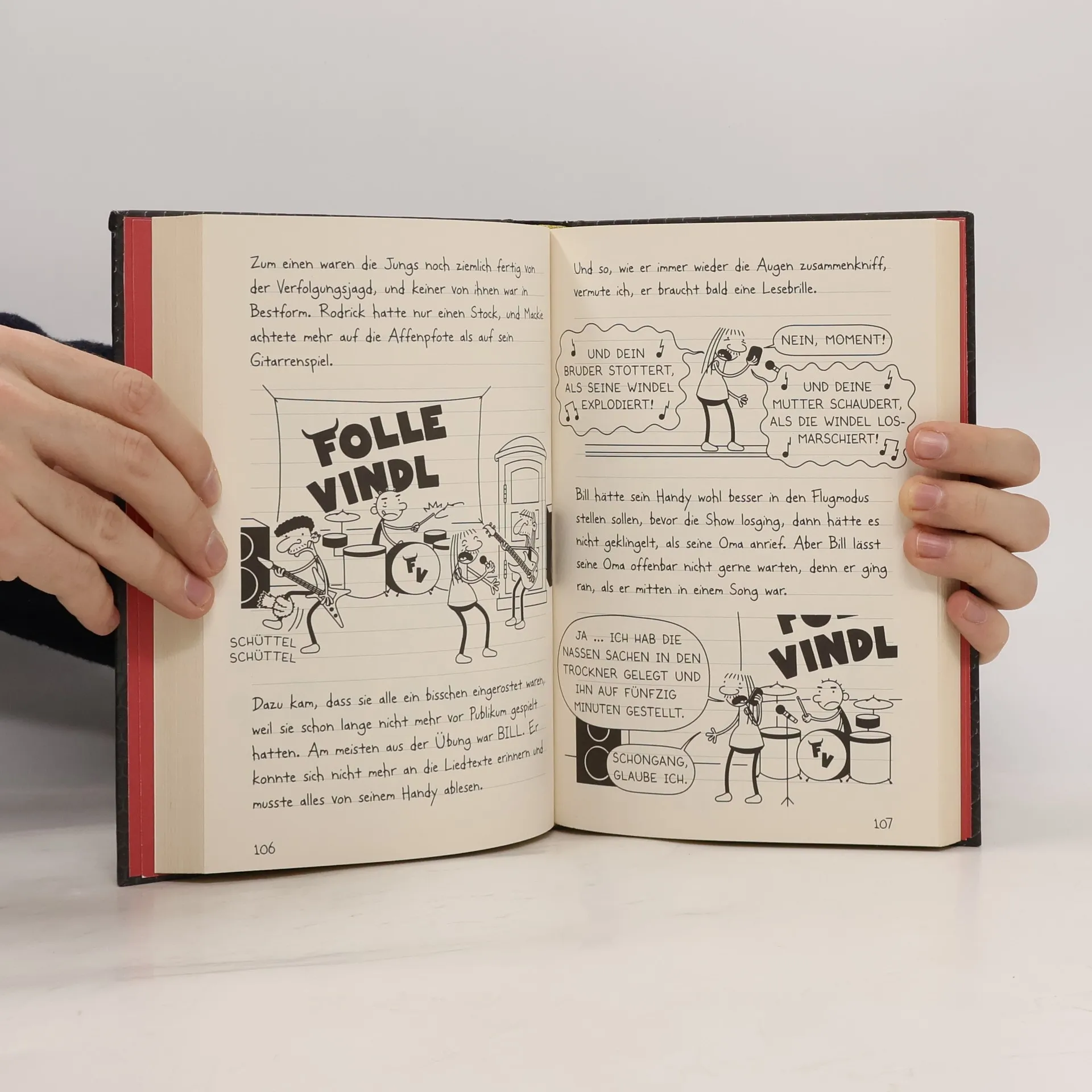 Let's rock! Band 17 der beliebten Comic-Roman-Reihe von Bestseller-Autor Jeff Kinney Eigentlich hatte Greg immer nur ein Ziel: eines Tages reich und berühmt zu sein. Doch auch wenn er es toll fände, seinen Namen in Leuchtbuchstaben zu lesen, hält er das Promi-Leben für viel zu anstrengend. Sein Plan: Jemand aus der Familie muss den Job übernehmen. Also beschließt Greg, seinem großen Bruder Rodrick und dessen Band dabei zu helfen, echte Rockstars zu werden. Doch das ist leichter gesagt als getan. Erst recht, wenn der Bandname Folle Vindl lautet. Und auch sonst verlangt ihm der Alltag in der Band so einiges ab: lange Nächte, unbezahlte Auftritte, Streit unter den Bandmitgliedern und Geldsorgen ... Ob Gregs Plan am Ende doch noch aufgeht? Angriff auf die Lachmuskeln garantiert: großer Lesespaß mit Greg! Mit zahlreichen coolen Cartoons von Jeff Kinney Über 275 Millionen verkaufte Bücher weltweit Der Titel ist mit einem Quiz auch bei Antolin gelistet