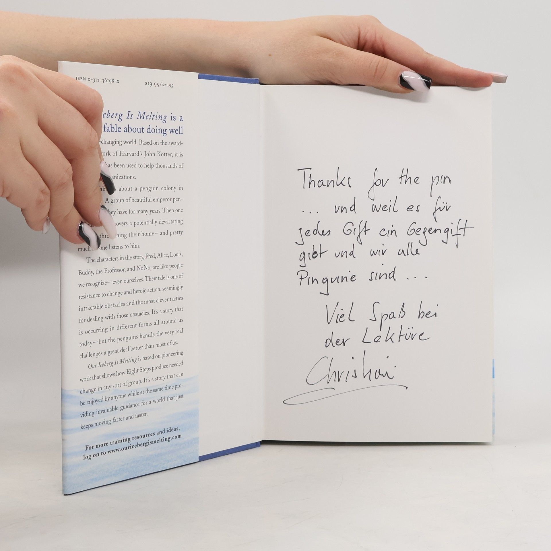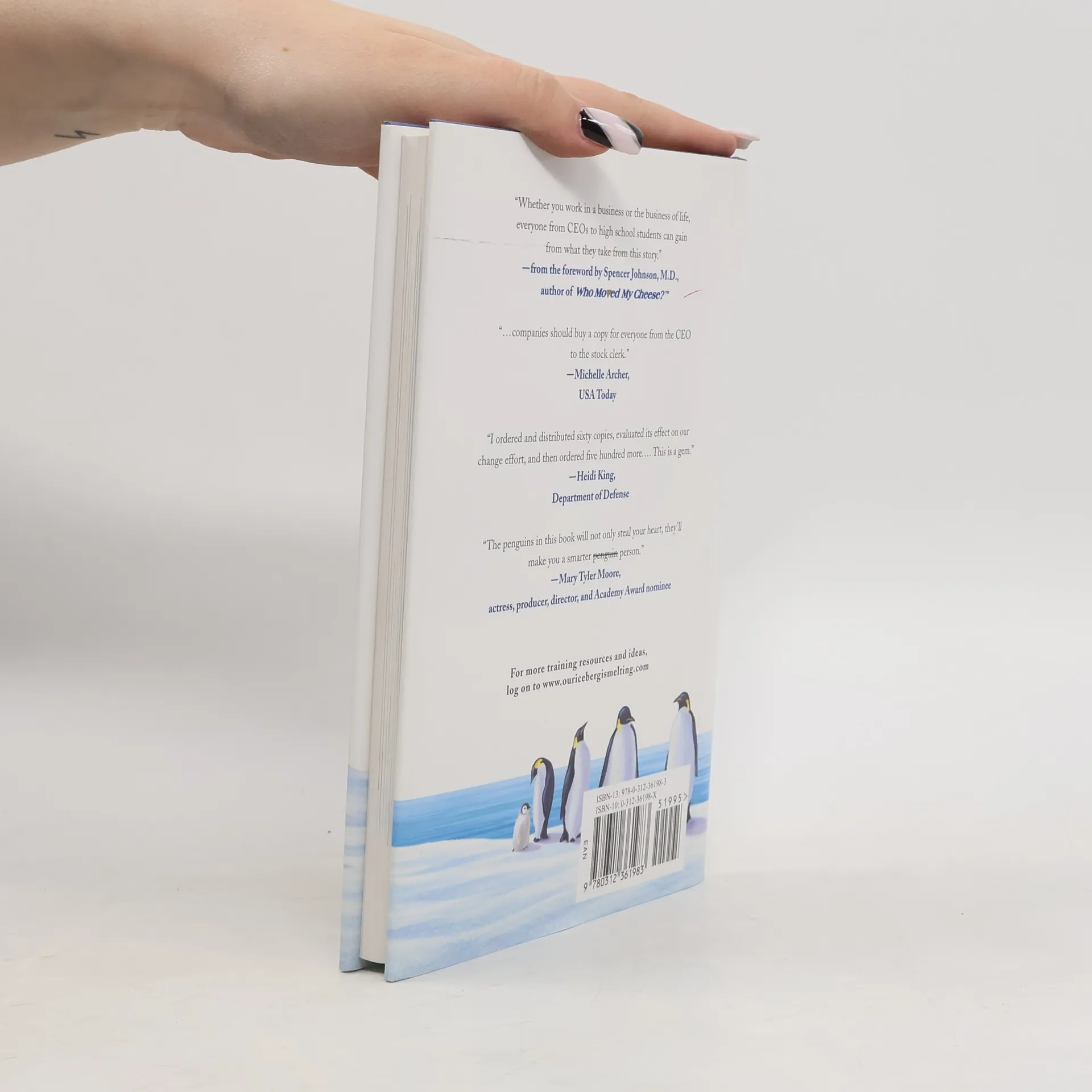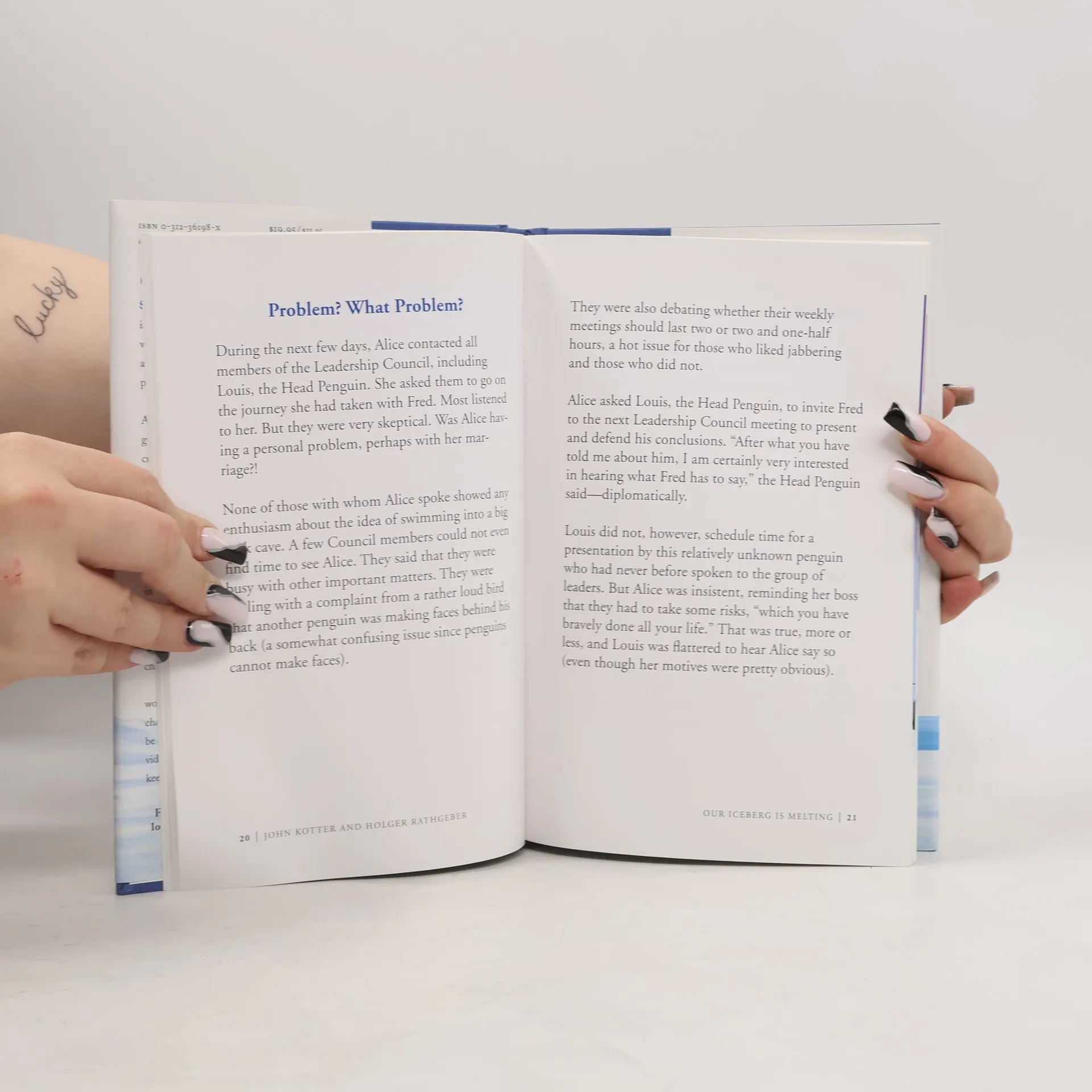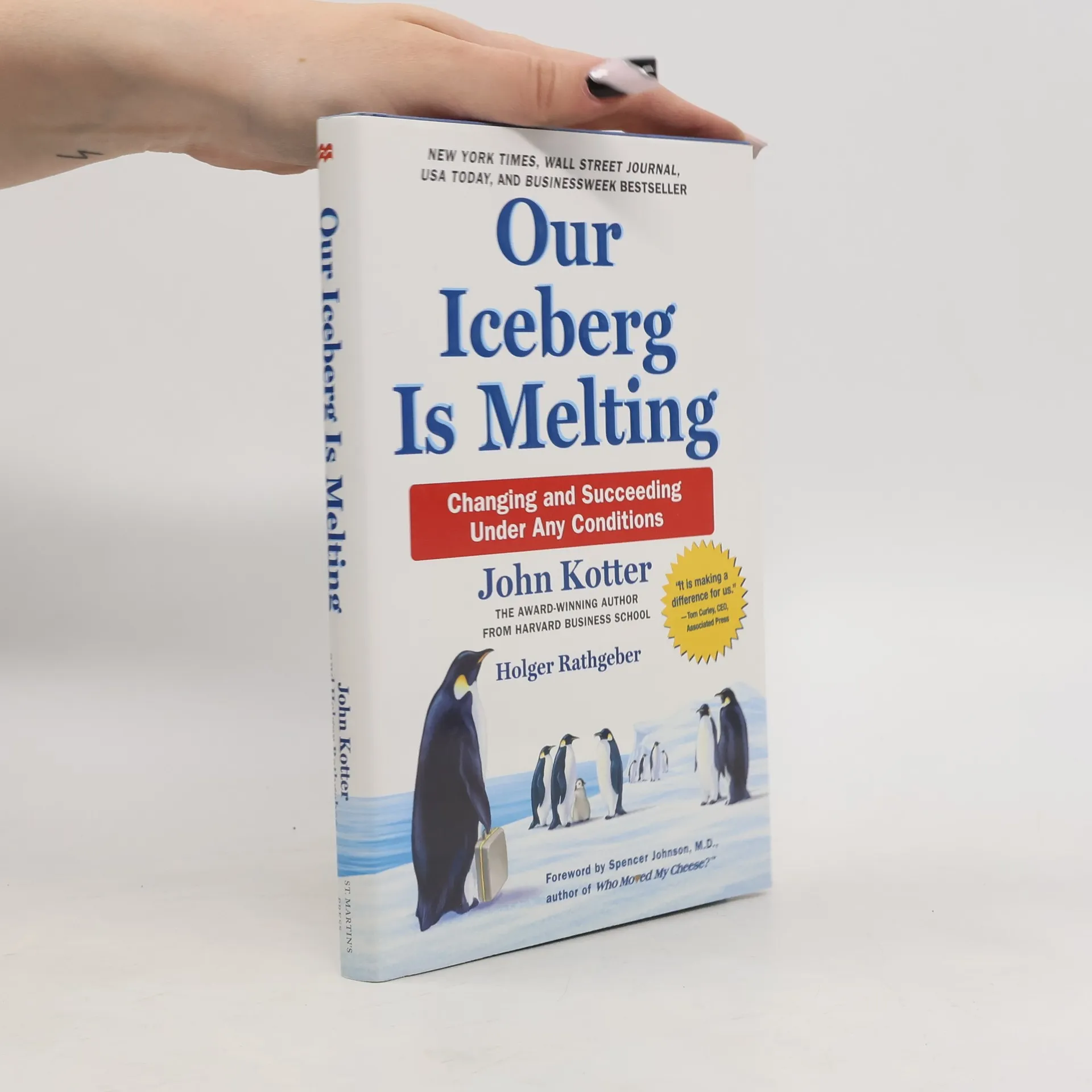Most of the denizens of the Antarctic penguin colony sneer at Fred, the quiet but observant scout who detects worrying signs that their home, an iceberg, is melting. Fred must cleverly convince and enlist key players, such as Louis, the head penguin; Alice, the number two bird; the intractable NoNo the weather expert; and a passle of school-age penguins if he is to save the colony. Their delightfully told journey illuminates in an unforgettable way how to manage the necessary change that surrounds us all. Simple explanatory material following the fable enhances the lasting value of these lessons. Our Iceberg Is Melting is at once charming, accessible and profound; a treat for virtually any reader.