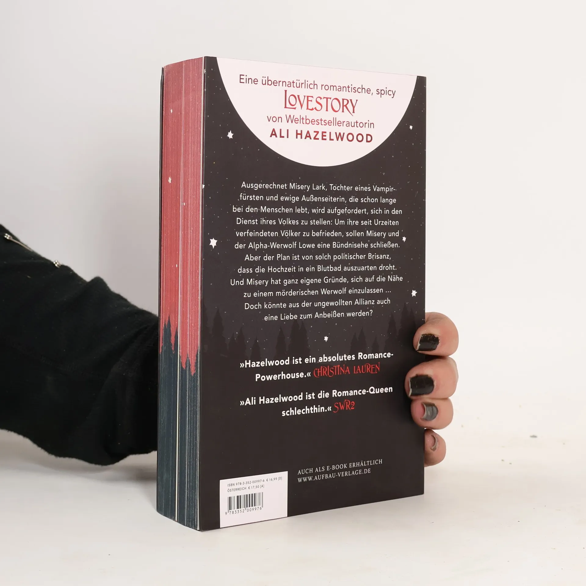 Mit wunderschönem farbigem Buchschnitt – limitiert auf die erste Auflage. Misery Lark, Tochter eines mächtigen Vampirfürsten, ist eine Außenseiterin, die unter den Menschen ein anonymes Dasein führt. Plötzlich soll sie sich jedoch einer brisanten Bündnisehe mit einem Werwolf, dem ewigen Feind der Vampire, hingeben. Ihr zukünftiger Ehemann, der Alpha Lowe Moreland, ist ebenso erbarmungslos wie unberechenbar, regiert jedoch mit Autorität und einem Sinn für Gerechtigkeit, was ihn von den Vampiren unterscheidet. Misery spürt, dass er ihr nicht traut – und das aus gutem Grund, denn sie hat eigene Motive für das Bündnis und ist bereit, alles zu opfern, selbst ein Leben unter Wölfen. Doch sie hat nicht mit der überwältigenden Kraft der Liebe gerechnet, die alle Unterschiede überwindet. Der neue Bestseller von Ali Hazelwood erzählt von einer Liebe zwischen zwei Welten: Forbidden Love, Fated Mates, Enemies to Lovers und mehr in einer übernatürlich romantischen, prickelnd heißen Lovestory aus einem neuen Teil des Aliversums. »Hazelwood ist ein absolutes Romance-Powerhouse.« – Christina Lauren. »Leidenschaftlich und witzig – Ali Hazelwoods Debüt im Paranormalen führt uns in eine faszinierende Welt.« – Nalini Singh, New-York-Times-Bestsellerautorin.