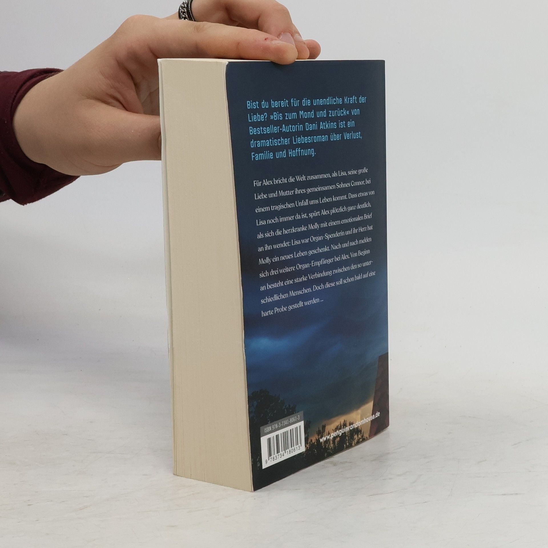 Bist du bereit für die unendliche Kraft der Liebe? »Bis zum Mond und zurück« von Bestseller-Autorin Dani Atkins ist ein dramatischer Liebesroman über Verlust, Familie und Hoffnung. Für Alex bricht die Welt zusammen, als seine Frau Lisa bei einem tragischen Unfall ums Leben kommt. Sie war nicht nur seine große Liebe, sondern auch die Mutter ihres gemeinsamen Sohnes Connor, der erst 6 Jahre alt ist. Dass etwas von Lisa noch immer da ist, spürt Alex plötzlich ganz deutlich, als sich die herzkranke Molly mit einem sehr emotionalen Brief an ihn wendet: Lisa war Organ-Spenderin, und ihr Herz hat Molly ein neues Leben geschenkt. Nach und nach melden sich drei weitere Organ-Empfänger bei Alex. Von Beginn an besteht eine starke Verbindung zwischen den so unterschiedlichen Menschen. Als der kleine Connor von zu Hause fortläuft, um seine Mutter zu suchen, und dabei in Lebensgefahr gerät, werden die neuen Freundschaften auf eine harte Probe gestellt. Wenn der Tod nicht das Ende ist: Dani Atkins, die Meisterin der ganz großen Gefühle, hat einen wunderschönen, dramatischen Liebesroman geschrieben, der zu Tränen rührt und gleichzeitig immer wieder ein Lächeln schenkt. Entdecke auch die anderen außergewöhnlichen Liebesromane von Dani Atkins: Die Achse meiner Welt Die Nacht schreibt uns neu Der Klang deines Lächelns Sieben Tage voller Wunder Das Leuchten unserer Träume Sag ihr, ich war bei den Sternen Wohin der Himmel uns führt