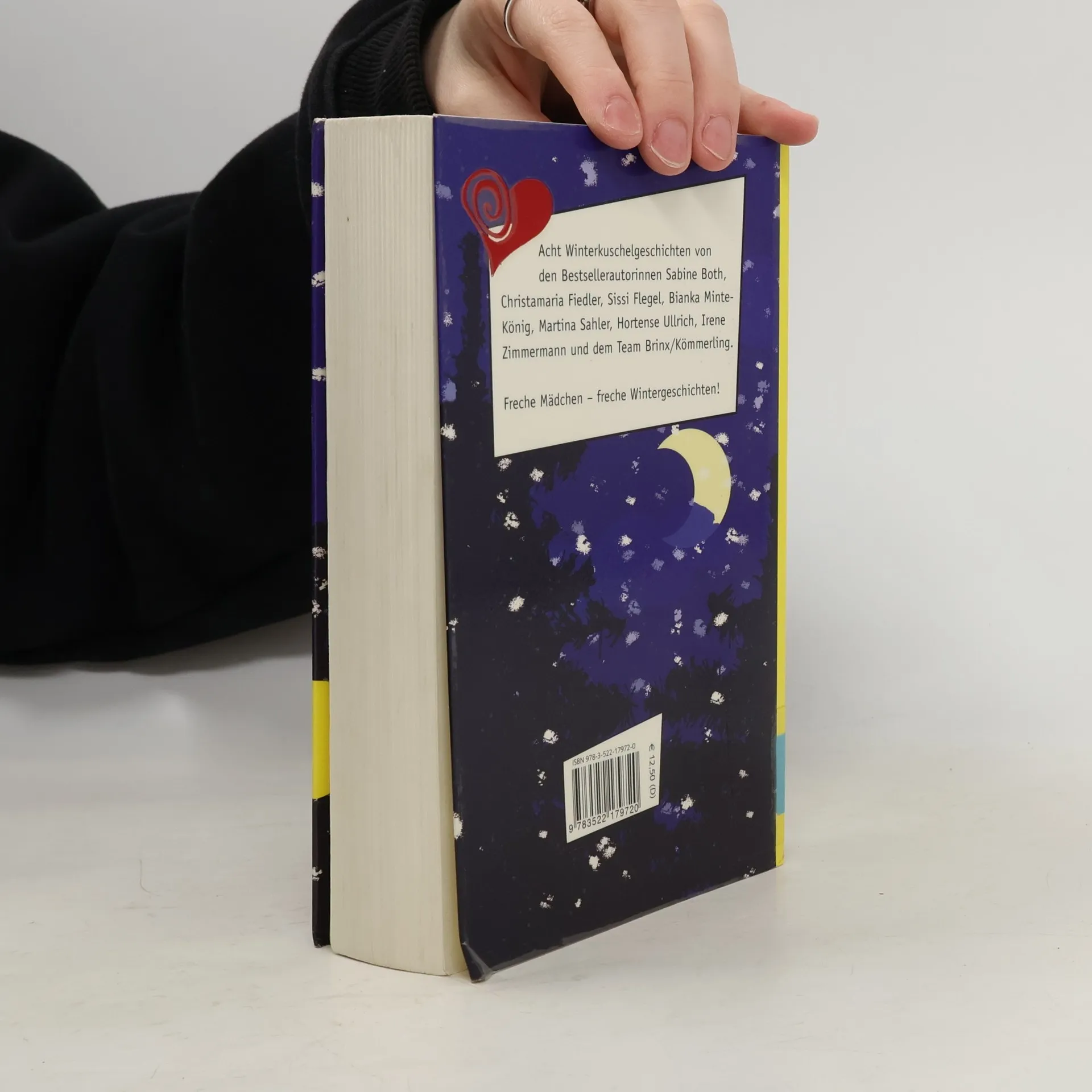 8 Winterkuschelgeschichten von 8 Bestseller-Autorinnen: Sabine Both: Lebkuchenherz zu verschenken Brinx/Kömmerling: Kuschliges neues Jahr. Christamaria Fiedler: Bratapfel criminale. Sissi Flegel: Liebe, Ski & Schneegestöber. Bianka Minte-König: Heiße Küsse, kalte Füße. Martina Sahler: Konfettiküsse. Hortense Ullrich: Kuss oder Kürbis. Irene Zimmermann: Küsse, Chaos, Schlittenfahrt. Reihe „Freche Mädchen - Freche Bücher!“. Auch mit Schal erhältlich unter ISBN 978-3-522-17977-5 (Euro 19,90)