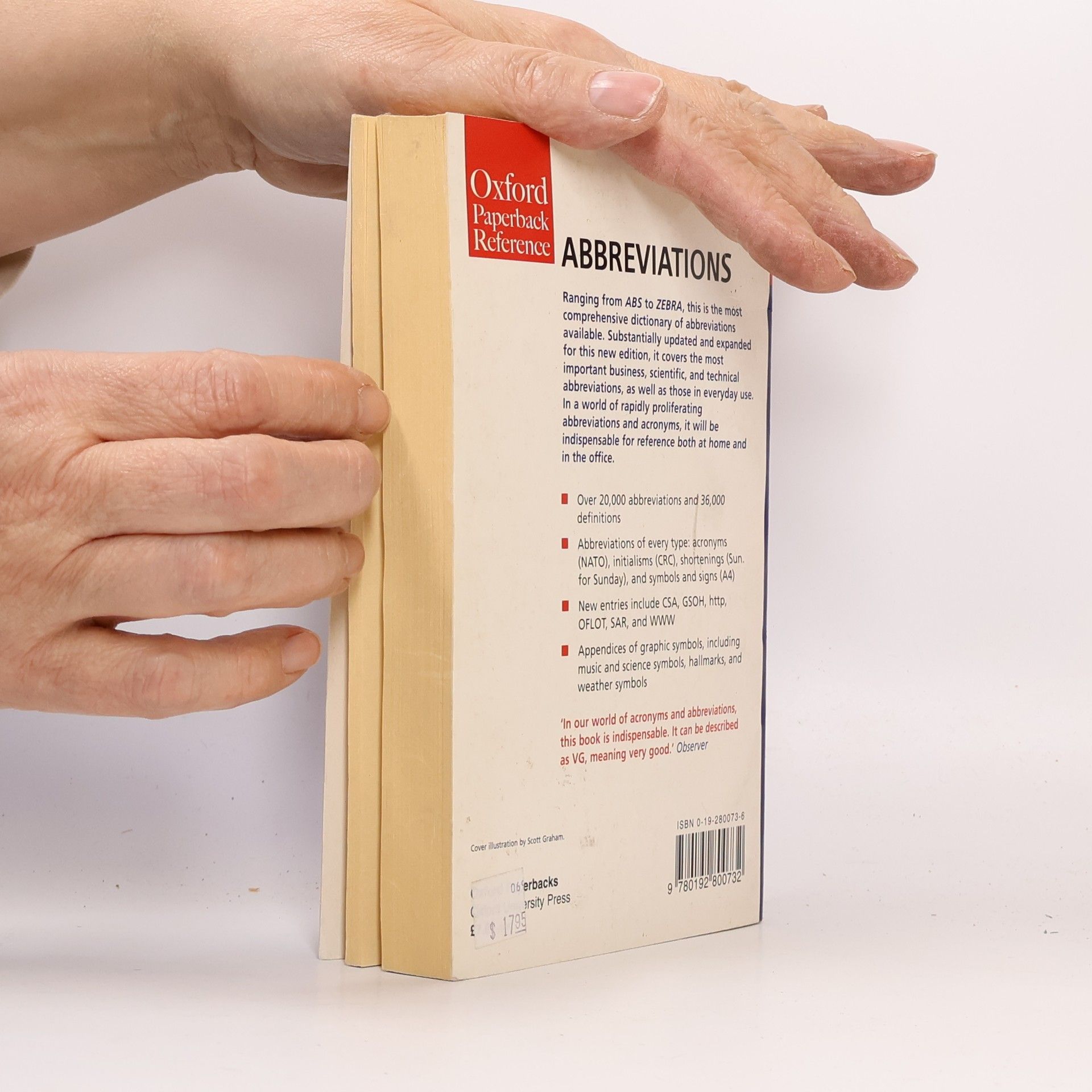 Abbreviations are a part of everyday life and are becoming increasingly prevalent in the areas of banking, computers, and business. Compiled from the resources of the Oxford English Dictionary and a wide range of newspapers and journals, Dictionary of Abbreviations, Second Edition is the mostup-to-date and comprehensive guide to abbreviations available in paperback. Covering all the most important business, scientific, and technical abbreviations, as well as those in everyday use, the dictionary contains over 20,000 abbreviations and 36,000 definitions. Included here are acronyms( ROM, NATO ), initialisms ( OED, CFC ), shortenings ( Sun. for Sunday ), symbols, and signs ( K, HZ , and A4 ), as well as hybrid forms ( A-bomb ). Coverage is also international in scope, and graphic symbols such as proofreading marks, hallmarks, music, science, and weather symbols are all provided in aseries of appendices. This new edition, containing 1,700 new headwords and senses, also provides the latest abbreviations for organizations, terms used in advertising, computers and the internet, medicine, and government.