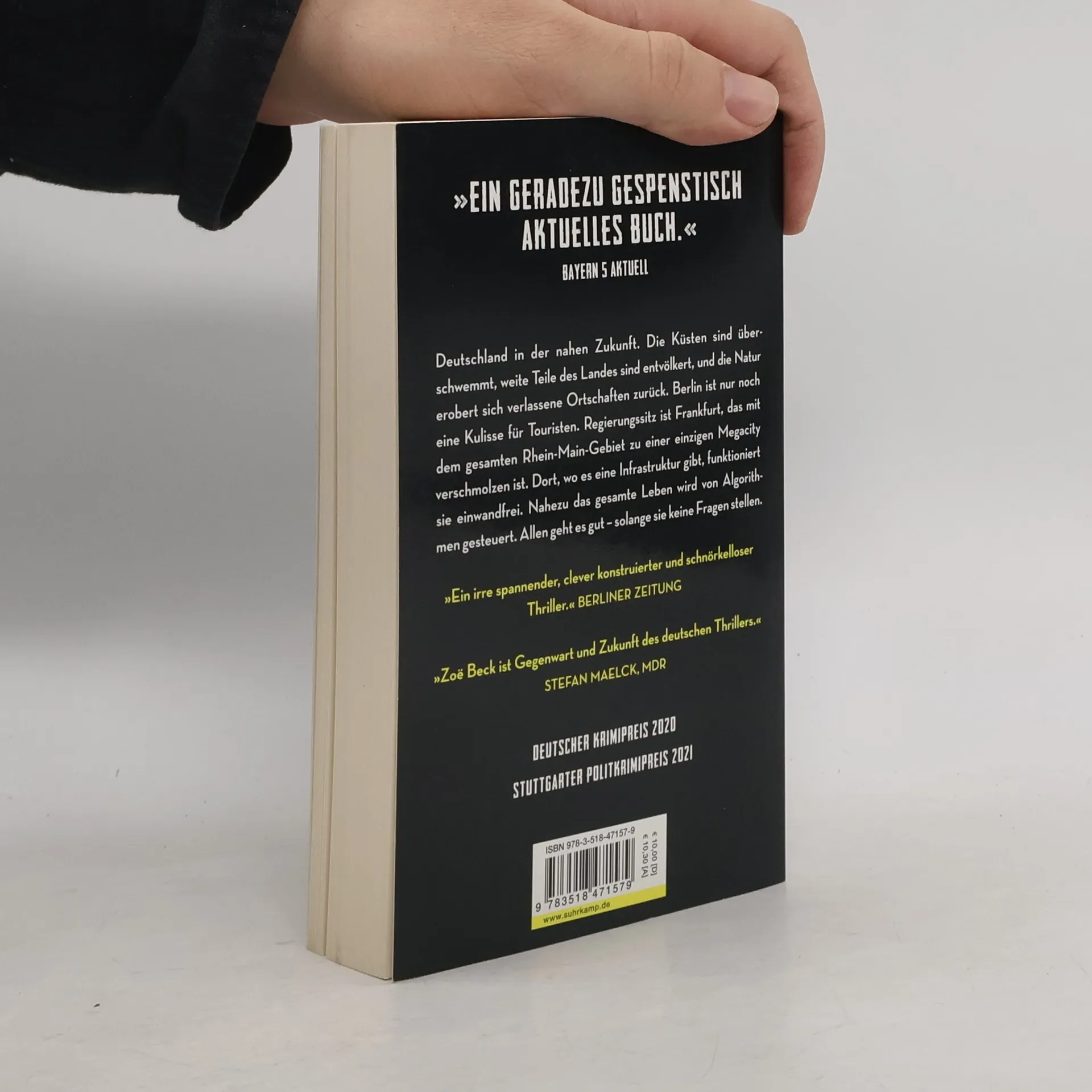 Deutschland in der nahen Zukunft. Die Küsten sind überschwemmt, weite Teile des Landes sind entvölkert, und die Natur erobert sich verlassene Ortschaften zurück. Berlin ist nur noch eine Kulisse für Touristen. Regierungssitz ist Frankfurt, das mit dem gesamten Rhein-Main-Gebiet zu einer einzigen Megacity verschmolzen ist. Dort, wo es eine Infrastruktur gibt, funktioniert sie einwandfrei. Nahezu das gesamte Leben wird von Algorithmen gesteuert. Allen geht es gut – solange sie keine Fragen stellen. Liina, Rechercheurin bei einem der letzten nichtstaatlichen Nachrichtenportale, wird in die Uckermark geschickt, um zu überprüfen, ob dort tatschlich Schakale eine Frau angefallen haben. Dabei sollte sie eigentlich eine brisante Story übernehmen. Während sie widerwillig ihren Job macht, hat ihr Chef einen höchst merkwürdigen Unfall, und eine junge Kollegin wird ermordet. Beide haben an der Story gearbeitet, die Liina versprochen war. Anfangs glaubt sie, es ginge um den Handel mit Gesundheitsdaten im großen Stil, doch dann stößt sie auf die schaurige Wahrheit: Jemand, der ihr sehr nahesteht, hat die Macht, über Leben und Tod fast aller Menschen im Land zu entscheiden. Und diese Macht gerät nun außer Kontrolle ...