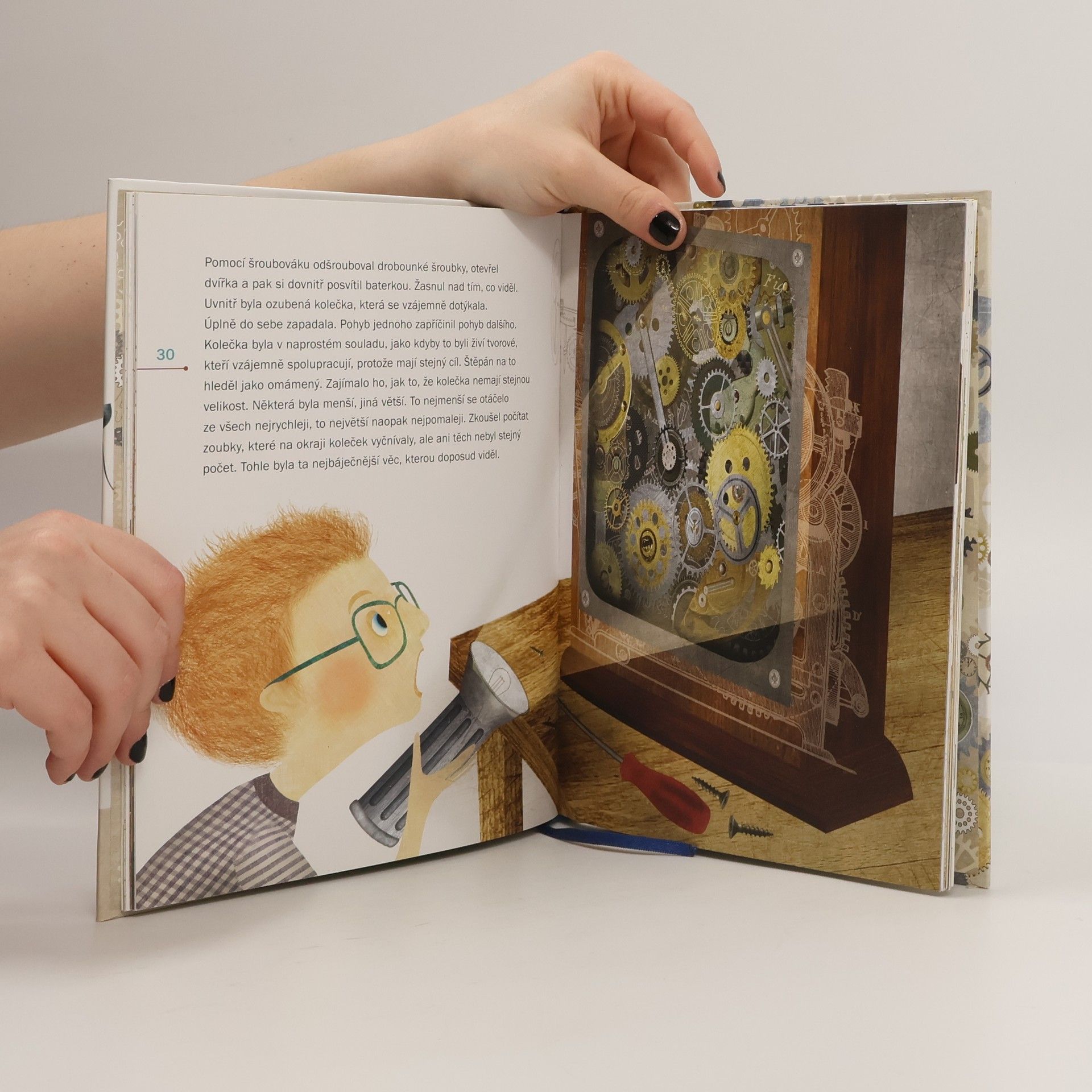 Štěpán je neobyčejně zvídavý kluk. Všechno ho zajímá, všemu chce přijít na kloub. Jakmile je v jeho dosahu nějaký přístroj, hned zkoumá, jak funguje a jak by se ho dalo využít. Na otázku, čím by chtěl být, bez váhání odpoví: „Budu vynálezcem!“ Co se stane, když se takový kluk ocitne sám v noci s velkými starožitnými hodinami? Jak fungují? A jaké tajemství se skrývá u prarodičů na půdě? Vezměte si šroubovák, hodinářské kukátko a probuďte ve svých dětech vynálezce. Kniha je určena pro předškolní děti nebo pro čerstvé školáky, kteří mají rádi stroje a přístroje a rádi si čtou s rodiči. Mimo jiné příběh o Štěpánovi dětem nenásilně a hravou formou osvětluje základní terminologii spojenou s určováním času (malá a velká ručička a jaký časový úsek ukazuje, celá hodina, časové úseky ciferníku atd.).