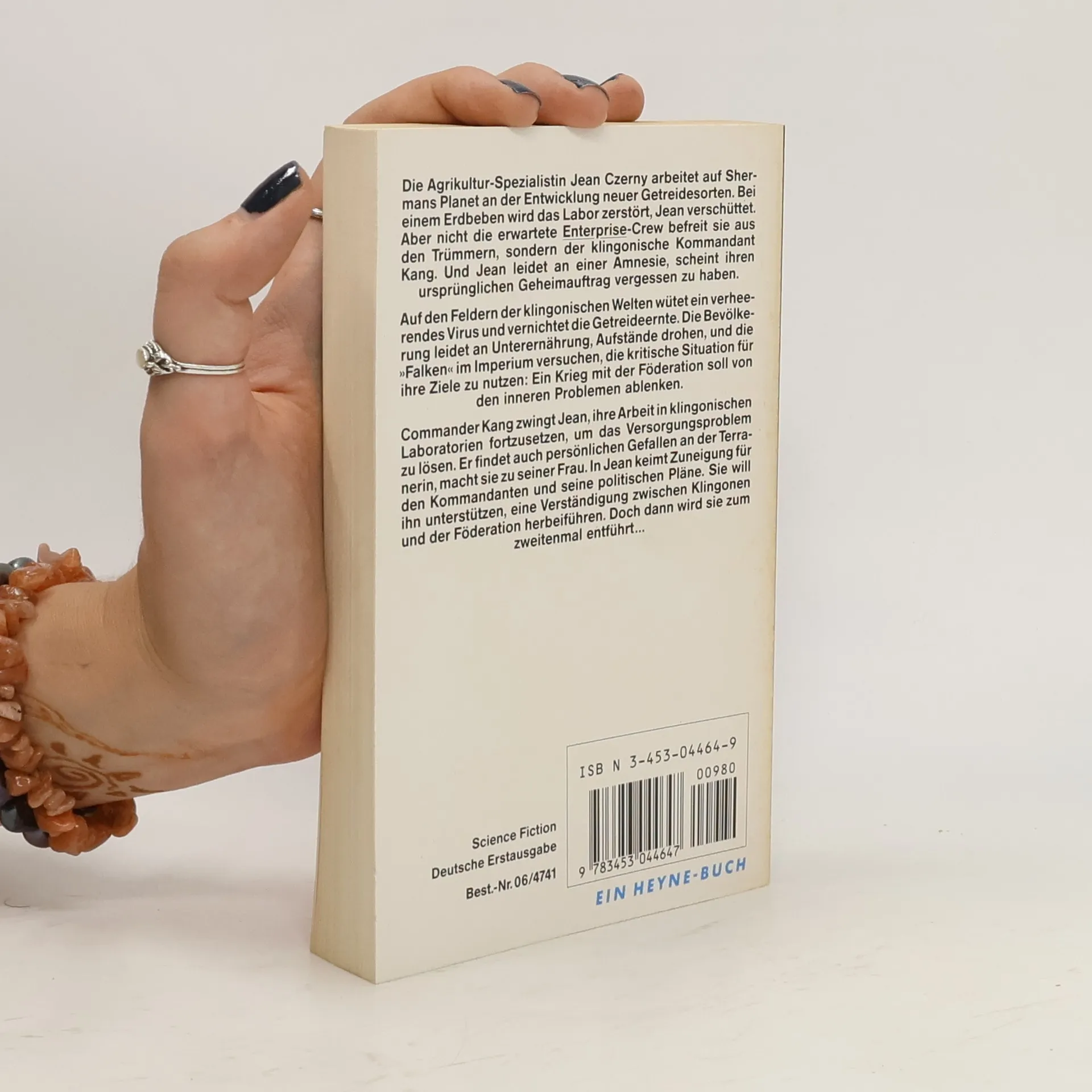 Die Agrikultur-Spezialistin Jean Czerny arbeitet auf Shermans Planet an der Entwicklung neuer Getreidesorten. Bei einem Erdbeben wird das Labor zerstört, Jean verschüttet. Aber nicht die erwartete Enterprise-Crew befreit sie aus den Trümmern, sondern der klingonische Kommandant Kang. Und Jean leidet an einer Amnesie, scheint ihren ursprünglichen Geheimauftrag vergessen zu haben. Auf den Feldern der klingonischen Welten wütet ein verheerendes Virus und vernichtet die Getreideernte. Die Bevölkerung leidet an Unterernährung, Aufstände drohen, und die Falken im Imperium versuchen, die kritische Situation für ihre Ziele zu nutzen: Ein Krieg mit der Föderation soll von den inneren Problemen ablenken. Commander Kang zwingt Jean, ihre Arbeit in klingonischen Laboratorien fortzusetzen, um das Versorgungsproblem zu lösen. Er findet auch persönlichen Gefallen an der Terranerin, macht sie zu seiner Frau. In Jean keimt Zuneigung für den Kommandanten und seine politischen Pläne. Sie will ihn unterstützen, eine Verständigung zwischen Klingonen und der Föderation herbeizuführen. Doch dann wird sie zum zweitenmal entführt…