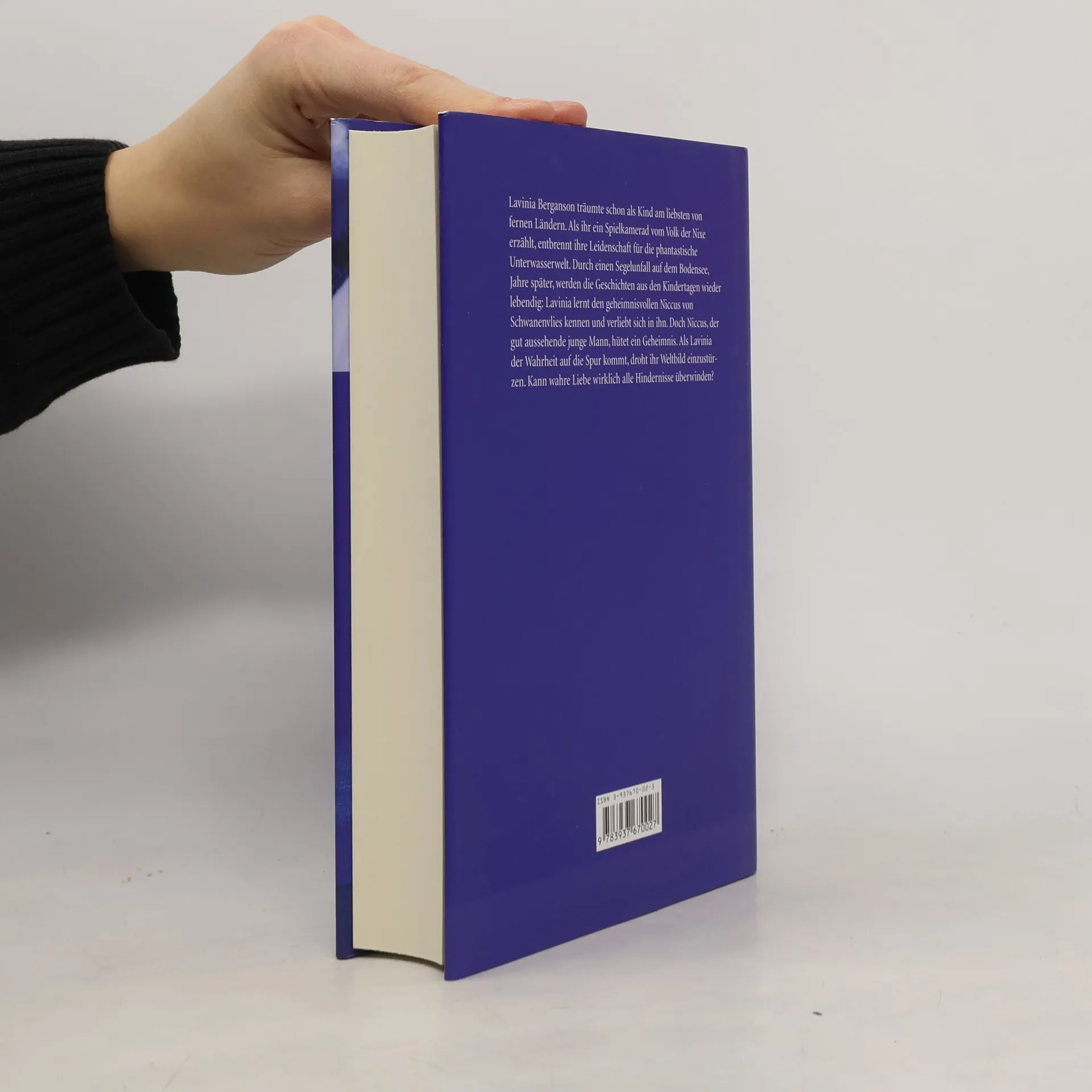 Die Vorstellung von phantastischen Unterwasserwelten, Nixen und Wassergeistern faszinierte Lavinia Berganson schon als Kind. Als sie jedoch Jahrzehnte später nach einem Segelunfall auf dem Bodensee den geheimnisvollen Niccus von Schwanenvlies kennen lernt, hat sie die Legende aus ihren Kindertagen fast vergessen. Niccus ist ein gut aussehender junger Mann, dem ein Hauch von Traurigkeit anhaftet. Lavinia ist dermaßen in ihn verliebt, dass es sie kaum kümmert, um welch ungewöhnliche Gefallen er sie bittet. Doch als sie die Wahrheit über ihn erfährt, droht ihr Weltbild einzustürzen. Kann wahre Liebe wirklich alle Hindernisse überwinden?