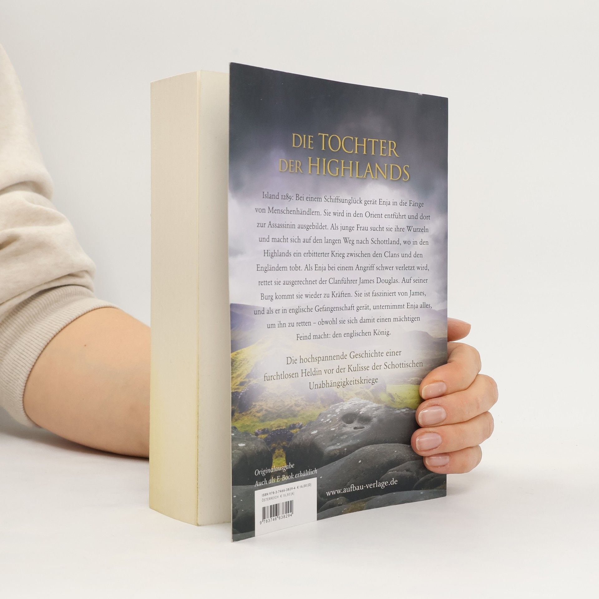 Die Tochter der Highlands. Island 1289: Bei einem Schiffsunglück gerät Enja in die Fänge von Menschenhändlern. Sie wird in den Orient entführt und dort zur Assassinin ausgebildet. Als junge Frau sucht sie ihre Wurzeln und macht sich auf den langen Weg nach Schottland, wo in den Highlands ein erbitterter Krieg zwischen den Clans und den Engländern tobt. Als Enja bei einem Angriff schwer verletzt wird, rettet sie ausgerechnet der Clanführer James Douglas. Auf seiner Burg kommt sie wieder zu Kräften. Sie ist fasziniert von James, und als er in englische Gefangenschaft gerät, unternimmt Enja alles, um ihn zu retten – obwohl sie sich damit einen mächtigen Feind macht: den englischen König. Die hochspannende Geschichte einer furchtlosen Heldin vor der Kulisse der Schottischen Unabhängigkeitskriege