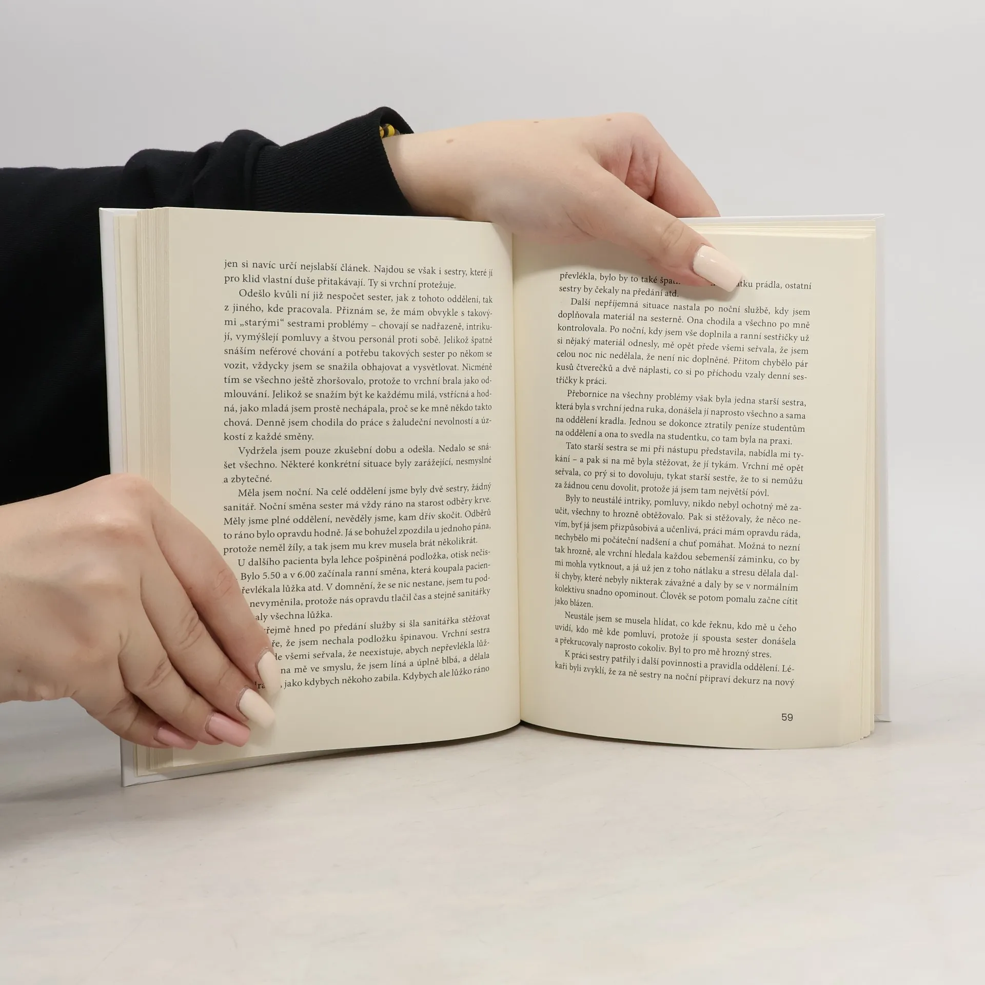 Skutečné příběhy o šikaně na pracovišti mezi zdravotníky, která je jednou z hlavních příčin, proč český zdravotnický systém nemá dostatečné množství zdravotních sester. Kniha je jakousi zpovědnicí zdravotních sester, které si prošly nebo procházejí šikanou na pracovišti. Na místě, kde tráví nejvíce času. Na místě, kde se léčí a uzdravuje. Za zavřenými dveřmi se kromě léčebných procesů odehrávají ještě další příběhy. Kniha mapuje osudy žen, které se ocitly v nepříjemných situacích a některým z nich chování kolegyň zapříčinilo vznik vážných onemocnění. Nejenže si prošly složitým dětstvím, ale ani v pracovním životě na ně nečekalo zrovna příjemné přivítání.