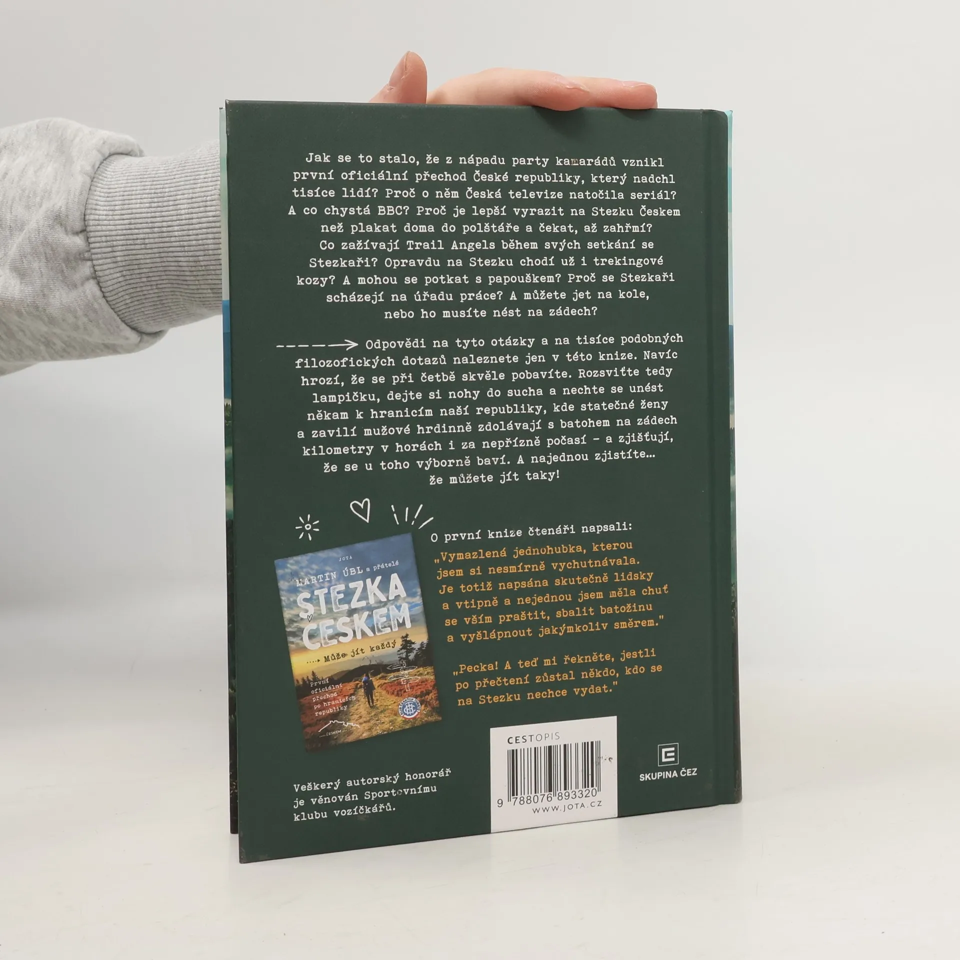 Jak se stalo, že z nápadu party kamarádů vznikl první oficiální přechod po hranicích České republiky, který nadchl tisíce lidí? Proč o něm Česká televize natočila seriál? A co chystá BBC? Proč je lepší na Stezku Českem vyrazit než plakat doma do polštáře a čekat, až zahřmí? Proč je rozumnější užívat si zážitky než jen sbírat rekordy v ušlých kilometrech? Co zažívají Trail Angels během svých setkání se Stezkaři? Opravdu už na Stezku chodí i trekingové kozy? A mohou se potkat s papouškem? A proč se Stezkaři scházejí na pracovním úřadě? A můžete jet na kole nebo ho musíte nést na zádech? Odpovědi na tyto a tisíce podobných filozofických otázek naleznete jen zde. Navíc hrozí, že se u toho skvěle pobavíte. Ztlumte tedy lampičku, dejte si nohy do sucha a nechte se unést k hranicím naší republiky, kde statečné ženy a zavilí mužové hrdinně zdolávají kilometry v horách s batohem i za nepřízně počasí a přitom zjišťují, že se výborně baví. A najednou zjistíte že můžete jít taky!
