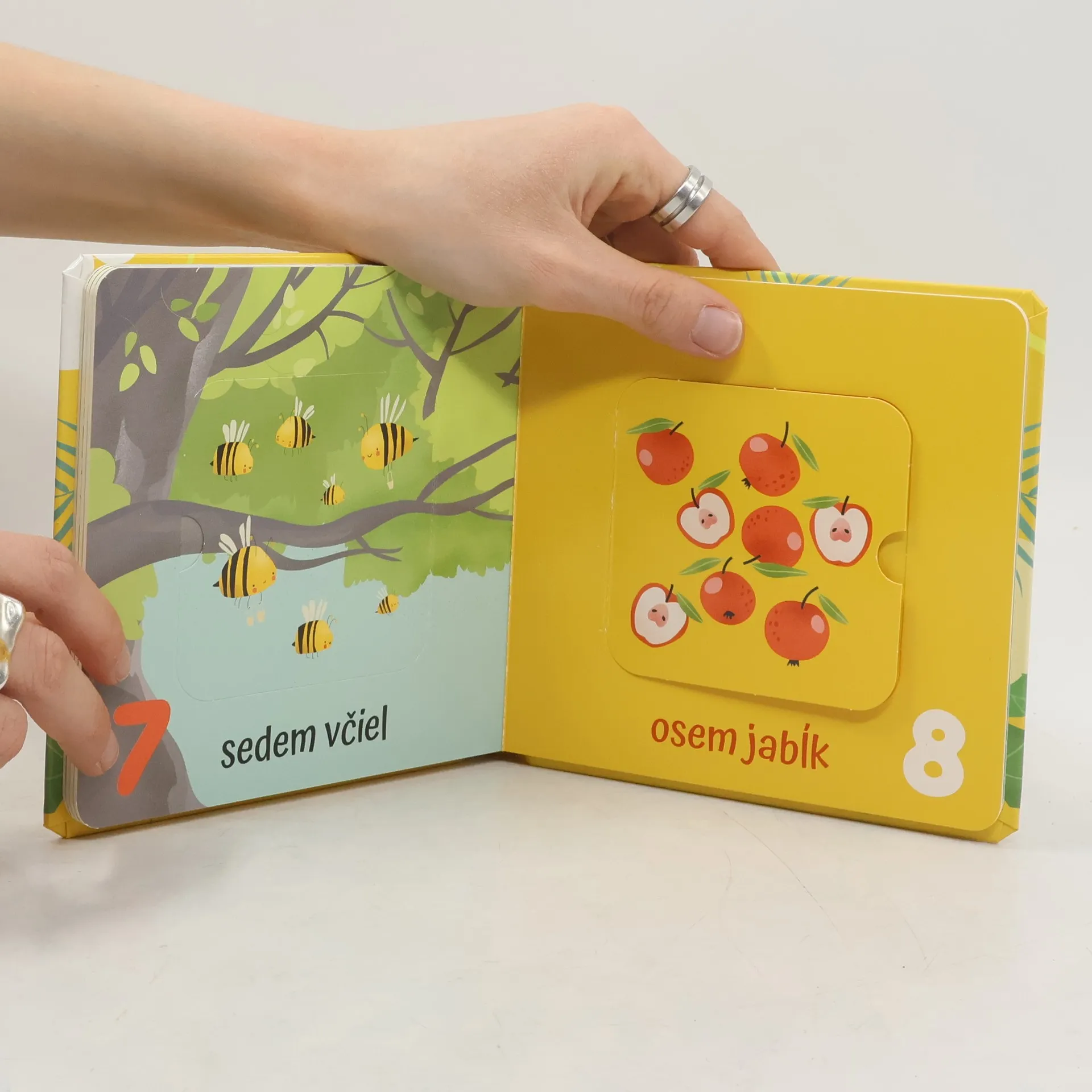 Vďaka knižke s otváracími okienkami sa dieťa naučí spoznávať prvé čísla po slovensky aj po anglicky.