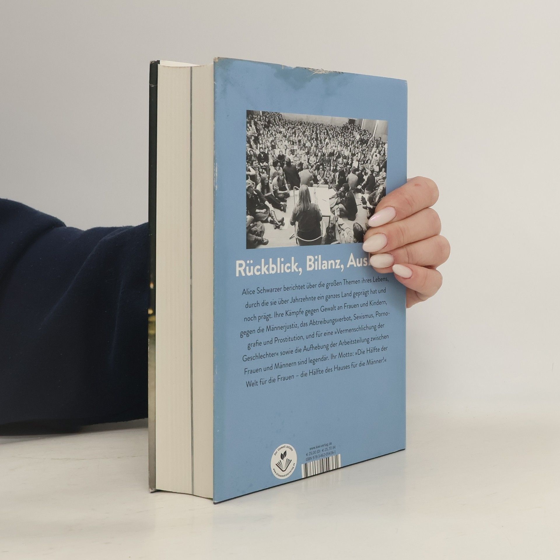 Rückblick, Bilanz, Ausblick. Alice Schwarzer reflektiert über die großen Themen ihres Lebens und ihrer Arbeit, die sie über Jahrzehnte prägten: Ihre Kämpfe gegen Gewalt an Frauen und Kindern, gegen die Männerjustiz, das Abtreibungsverbot, Sexismus, Pornografie und Prostitution sowie für eine „Vermenschlichung der Geschlechter“ und die Aufhebung der Arbeitsteilung zwischen Frauen und Männern sind legendär. Ihr Motto: „Die Hälfte der Welt für die Frauen – die Hälfte des Hauses für die Männer!“ Durch ihren lebendig erzählten Rückblick auf 50 Jahre wird das Ausmaß ihrer politischen Interventionen sichtbar, bis hin zu MeToo und der Kritik am politischen Islam. Ohne sie wäre das heutige Deutschland anders. Sie hat mit spektakulären TV-Streitgesprächen, etwa mit Esther Vilar (1975) oder Verona Feldbusch (2001), Geschichte geschrieben, ebenso wie mit ihren Büchern, der Gründung der Zeitschrift Emma (1977) und ihren öffentlichen Aktionen gegen den §218 („Ich habe abgetrieben“) und „PorNO“. Immer wieder stand sie im Mittelpunkt heftiger medialer Auseinandersetzungen. Das Buch enthält Erinnerungen, Begegnungen (u. a. mit Angela Merkel) und Einblicke in ihr Leben sowie ihre Positionen bis hin zu heutigen Debatten. Ein Anhang bietet Schlüsseltexte von Alice Schwarzer aus den letzten 50 Jahren.