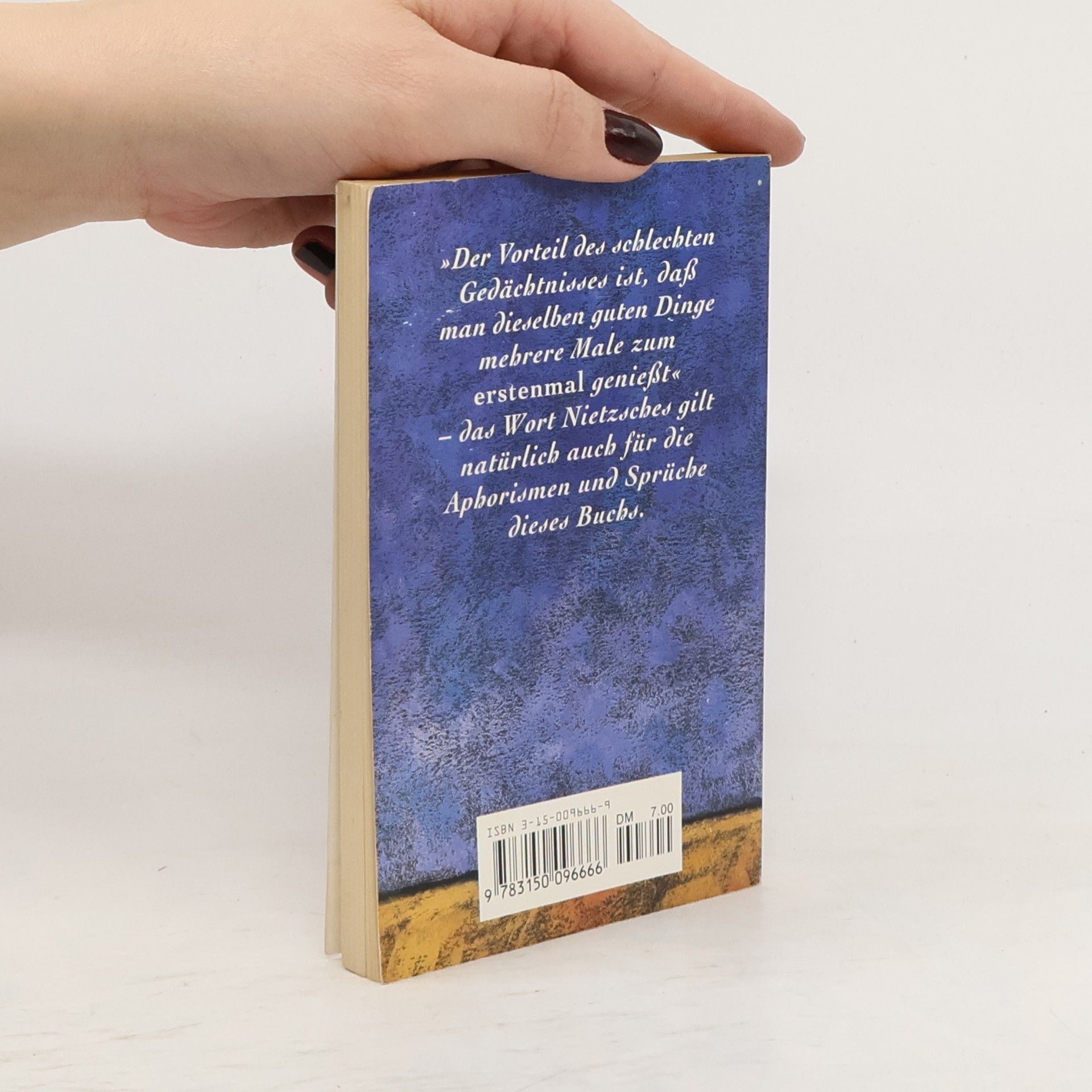 "Der Vorteil des schlechten Gedächtnisses ist, dass man dieselben guten Dinge mehrere Male zum "erstenmal" genießt" - das Wort Nietzsches mag sich auch an den Aphorismen und Sprüchen dieses Büchleins bewahrheiten. Die Sammlung will einen spielerischen und zugleich alltagsorientierten Zugang zum Zitatenschatz großer Schriftsteller und Philosophen vermitteln. Nach Themen und Bereichen des menschlichen Lebens und Zusammenlebens angeordnet, lädt das Buch ebenso zum linearen Durchlesen ein, wie es auch zum Blättern und Hineinschmökern geeignet ist - ein Vademecum für alle Lebenslagen.