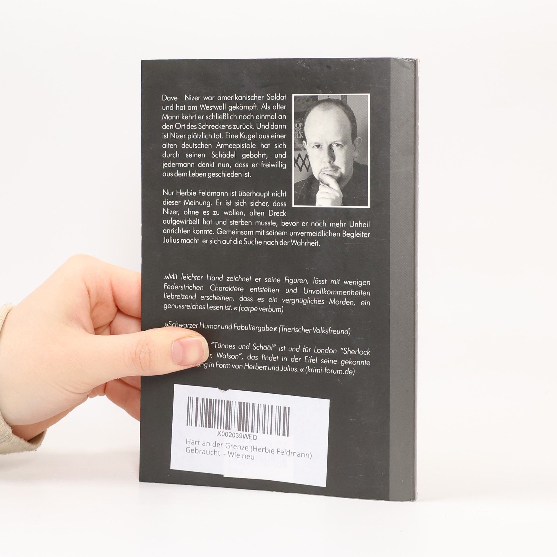 Grenzenlos tot Der fünfte Fall für Herbie und Julius Dave Nizer war amerikanischer Soldat und hat am Westwall in der Eifel gekämpft. Als alter Mann kehrt er schließlich noch einmal an den Ort des Schreckens zurück. Und dann ist Nizer plötzlich tot. Eine Kugel aus einer alten deutschen Armeepistole hat sich durch seinen Schädel gebohrt. Jedermann denkt nun, dass er freiwillig aus dem Leben geschieden ist. Nur Herbie Feldmann ist überhaupt nicht dieser Meinung. Er ist sich sicher, dass Nizer, ohne es zu wollen, alten Dreck aufgewirbelt hat und sterben musste, bevor er noch mehr Unheil anrichten konnte. Gemeinsam mit seinem unvermeidlichen Begleiter Julius macht er sich auf die Suche nach der Wahrheit.