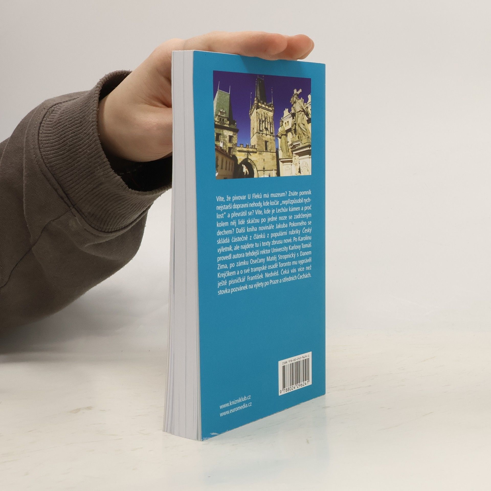 Víte, že pivovar U Fleků má muzeum? Znáte pomník nejstarší dopravní nehody, kde kočár "nepřizpůsobil rychlost" a převrátil se? Zaklepejte na skálu Klepec, navštivte muzeum hitmakera Bédi Smetany a skákejte po jedné noze se zadrženým dechem kolem Lechova kamene. Další kniha novináře Jakuba Pokorného se skládá částečně z článků z populární rubriky Český výletník, ale najdete tu i texty zbrusu nové. Čeká vás v ní více než stovka pozvánek na výlety po Praze a středních Čechách. Po Karolinu provedl autora rektor Univerzity Karlovy Tomáš Zima, po zámku Osečany jeho majitel Matěj Stropnický se svým partnerem Danem Krejčíkem a o své trampské osadě Toronto mu vyprávěl ještě písničkář František Nedvěd.