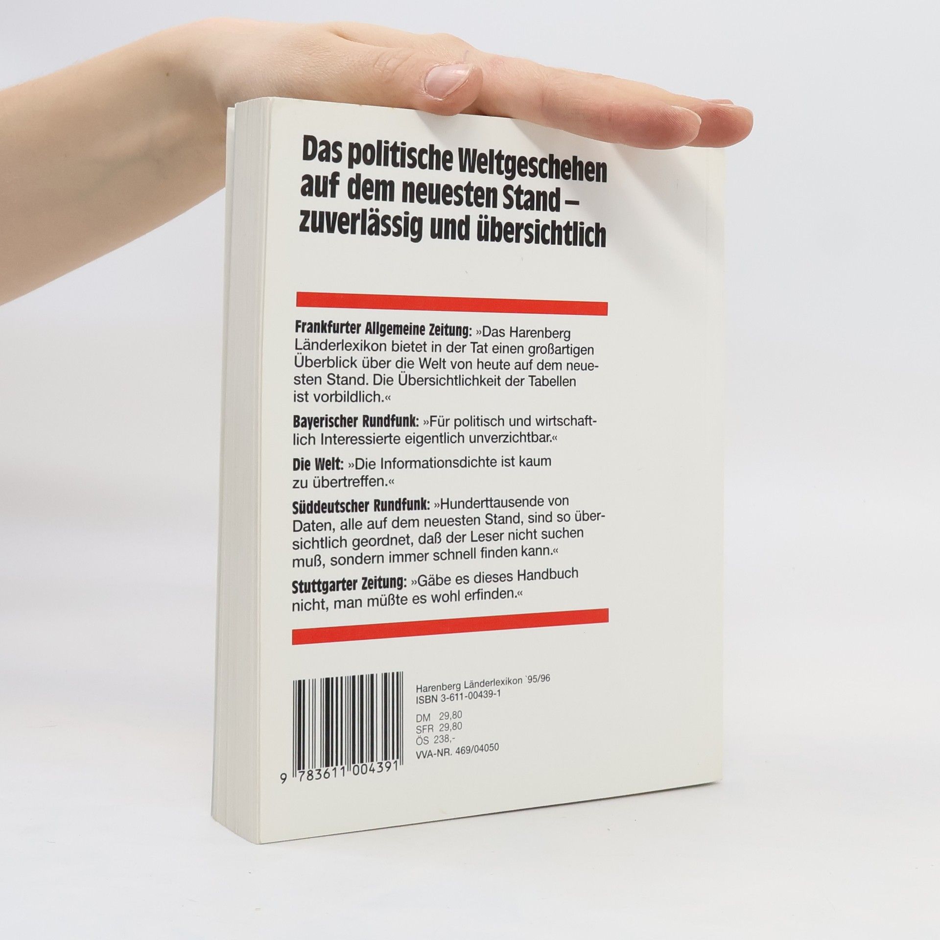 Alle wesentlichen Fakten, Hintergründe und Entwicklungen für sämtliche 192 Staaten der Welt bilden das Fundament für das "Harenberg Länderlexikon '95/96". Aufbereitet ist die Datenfülle in Übersichten, Karten, Tabellen, Fotos und Politikerbiografien. Das klar gegliederte Nachschlagewerk informiert über das komplexe Geschehen in der ständig wachsenden Staatengemeinschaft, über militärische Konflikte, multinationale Wirtschaftsbündnisse, die globalen Folgen von Umweltverschmutzung und vieles Wichtige mehr.