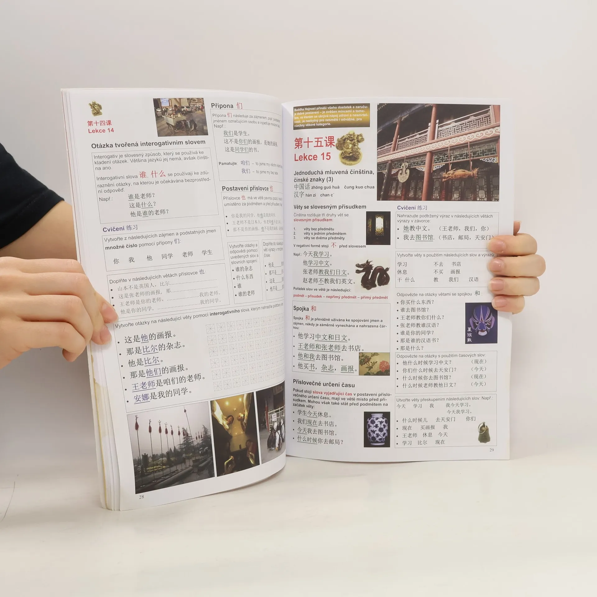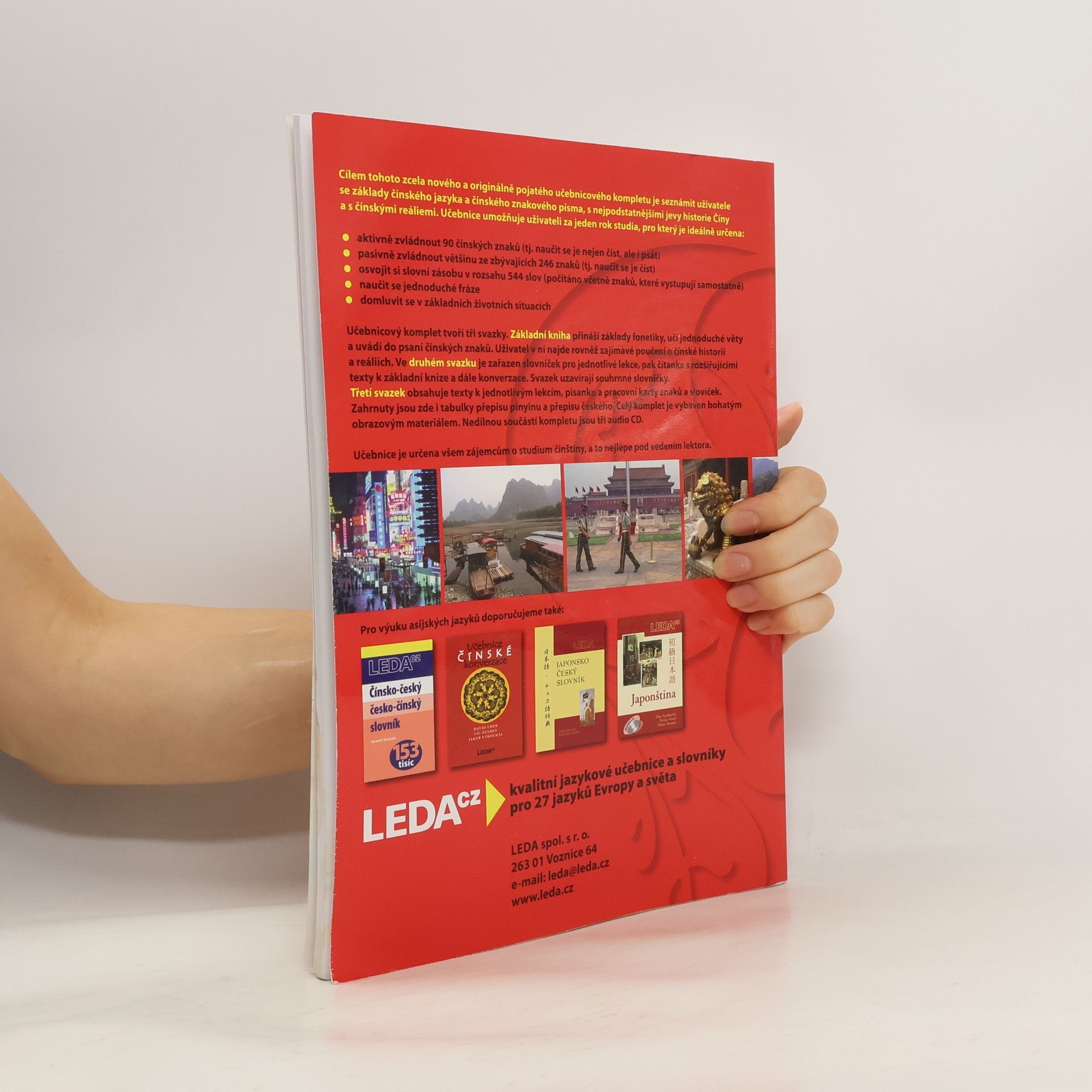 Tato nová učebnice čínštiny má seznámit uživatele se základy čínského jazyka a čínského znakového písma, s nejpodstatnějšími jevy historie Číny a s čínskými reáliemi. Umožňuje uživateli zvládnout aktivně 90 čínských znaků, pasivně zbývajících 246 znaků, osvojit si 544 slov,naučit se jednoduché fráze a domluvit se v základních životních situacích. Komplet obsahuje tři svazky. Základní kniha přináší základy fonetiky, učí jednoduché věty a uvádí do psaní čínských znaků. Ve druhém svazku je zařazen slovníček pro jednotlivé lekce, čítanka s rozšiřujícími texty k základní knize, konverzace a souhrnné slovníčky. Učebnice je určena všem zájemcům o studium čínštiny, a to nejlépe pod vedením lektora.