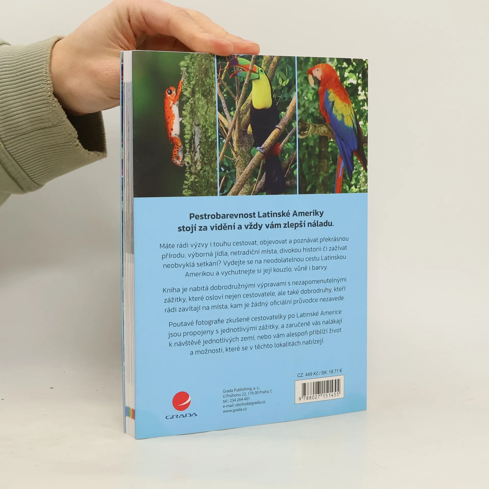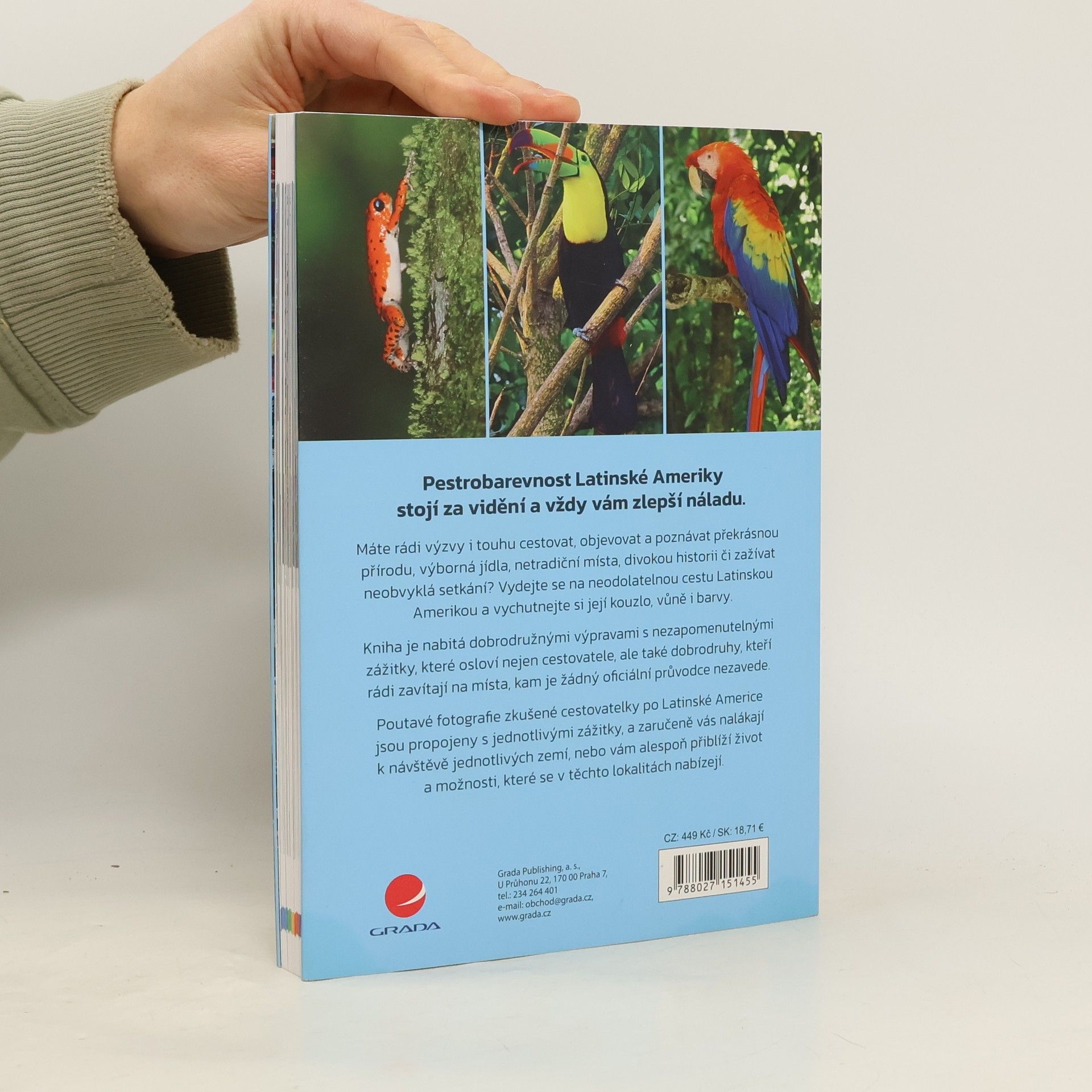 Pestrobarevnost Latinské Ameriky stojí za vidění a vždy vám zlepší náladu. Máte rádi výzvy i touhu cestovat, objevovat a poznávat překrásnou přírodu, výborná jídla, netradiční místa, divokou historii či zažívat neobvyklá setkání? Vydejte se na neodolatelnou cestu Latinskou Amerikou a vychutnejte si její kouzlo, vůně i barvy. Kniha je nabitá dobrodružnými výpravami s nezapomenutelnými zážitky, které osloví nejen cestovatele, ale také dobrodruhy, kteří rádi zavítají na místa, kam je žádný oficiální průvodce nezavede. Poutavé fotografie zkušené cestovatelky po Latinské Americe jsou propojeny s jednotlivými zážitky, a zaručeně vás nalákají k návštěvě jednotlivých zemí, nebo vám alespoň přiblíží život a možnosti, které se v těchto lokalitách nabízejí.