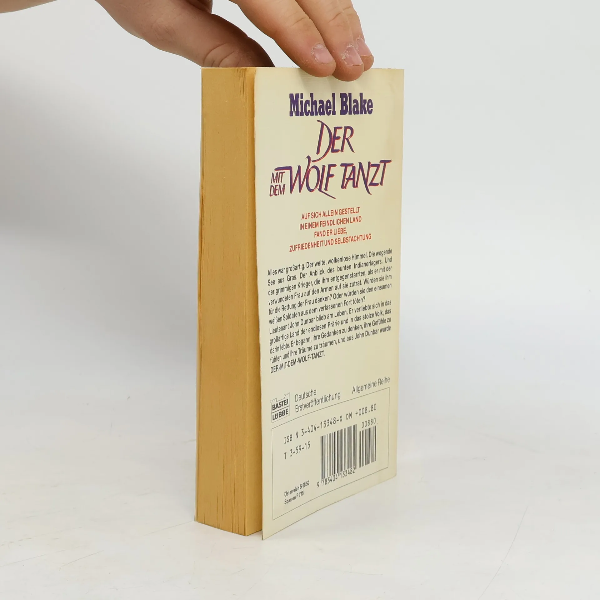 Auf sich allein gestellt, in einem feindlichen Land fand er Liebe, Zufriedenheit und Selbstachtung. Alles war großartig. Der weite, wolkenlose Himmel. Die wogende See aus Gras. Der Anblick des bunten Indianerlagers. Und der grimmigen Krieger, die ihm entgegenstarrten, als er mit der verwundeten Frau auf den Armen auf sie zutrat. Würden sie ihm für die Rettung der Frau danken? Oder würden sie den einsamen weißen Soldaten aus dem verlassenen Fort töten? Lieutenant John Dunbar blieb am Leben. Er verliebte sich in das großartige Land der endlosen Prärie und das stolze Volk, das darin lebte. Er begann, ihre Gedanken zu denken, ihre Gefühle zu fühlen und ihre Träume zu träumen, und aus John Dunbar wurde Der mit dem Wolf tanzt.