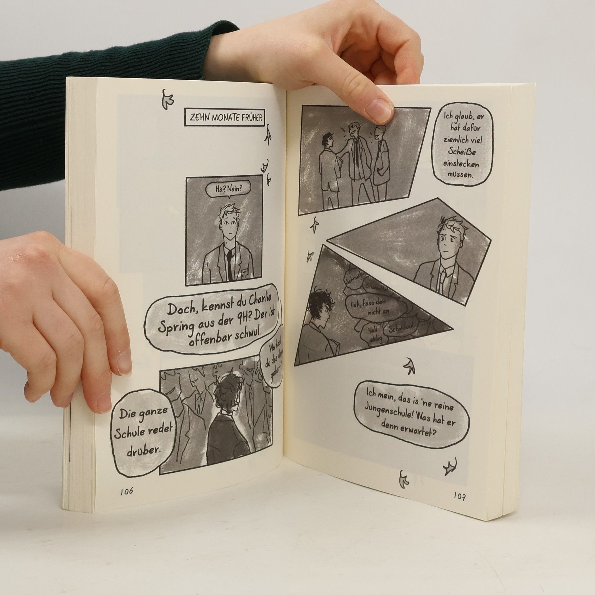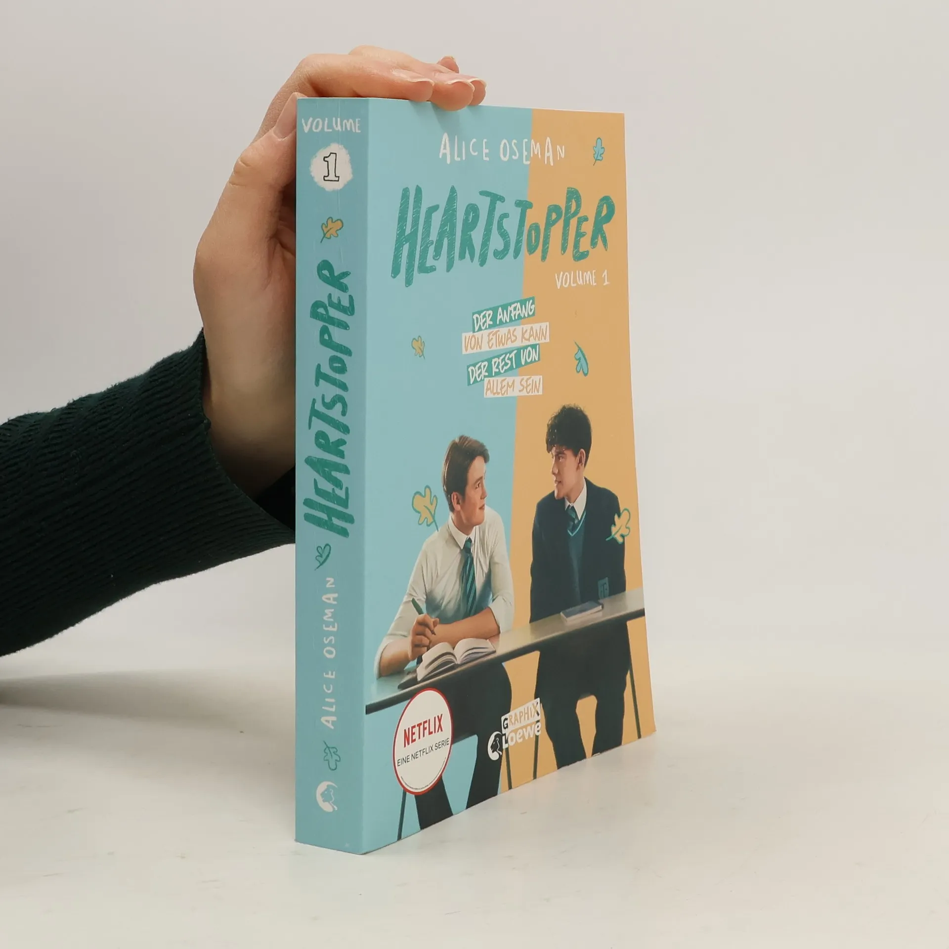Das Buch ist bei deiner Buchhandlung vor Ort und bei vielen Online-Buchshops erhältlich! Mitten ins Herz gestolpert Dass Charlie schwul ist, weiß die ganze Schule. Dagegen ist Nick, der Star der Rugbymannschaft, so straight wie eine Goal-Line. Glaubt Charlie. Aber Charlie merkt sofort, dass er in Nick verknallt ist. Nick braucht ein bisschen länger, bis ihm klar wird, dass er Jungen genauso heiß findet wie Mädchen – besonders Charlie. Heartstopper bricht millionenfach die Herzen der Leser*innen. Alice Osemans wunderschöne Lovestory in Bildern – jetzt als Taschenbuch mit den Stars der umjubelten Netflix-Serie auf dem Cover. Alice Osemans Graphic Novel Heartstopper begeisterte weltweit eine ganze Generation. Nun feiert die emotionale Liebesgeschichte von Nick und Charlie auch als Serie auf Netflix Erfolge. In der Buchvorlage erzählt die Bestsellerautorin mit liebevollen Zeichnungen und ohne viele Worte von einer ganz, ganz großen Liebe . Aber so ein Coming Out kann schwierig sein … Graphic Novels aus dem Heartstopper -Universum: Heartstopper Volume 1 Heartstopper Volume 2 Heartstopper Volume 3 Heartstopper Volume 4 Romane aus dem Heartstopper -Universum Nick & Charlie This Winter Weitere Jugendbuchromane von Alice Oseman bei Loewe: Loveless Nothing Left for Us (die deutsche Übersetzung von Radio Silence) Solitaire I was Born for This Klimaneutrales Produkt – Wir unterstützen ausgewählte Klimaprojekte!