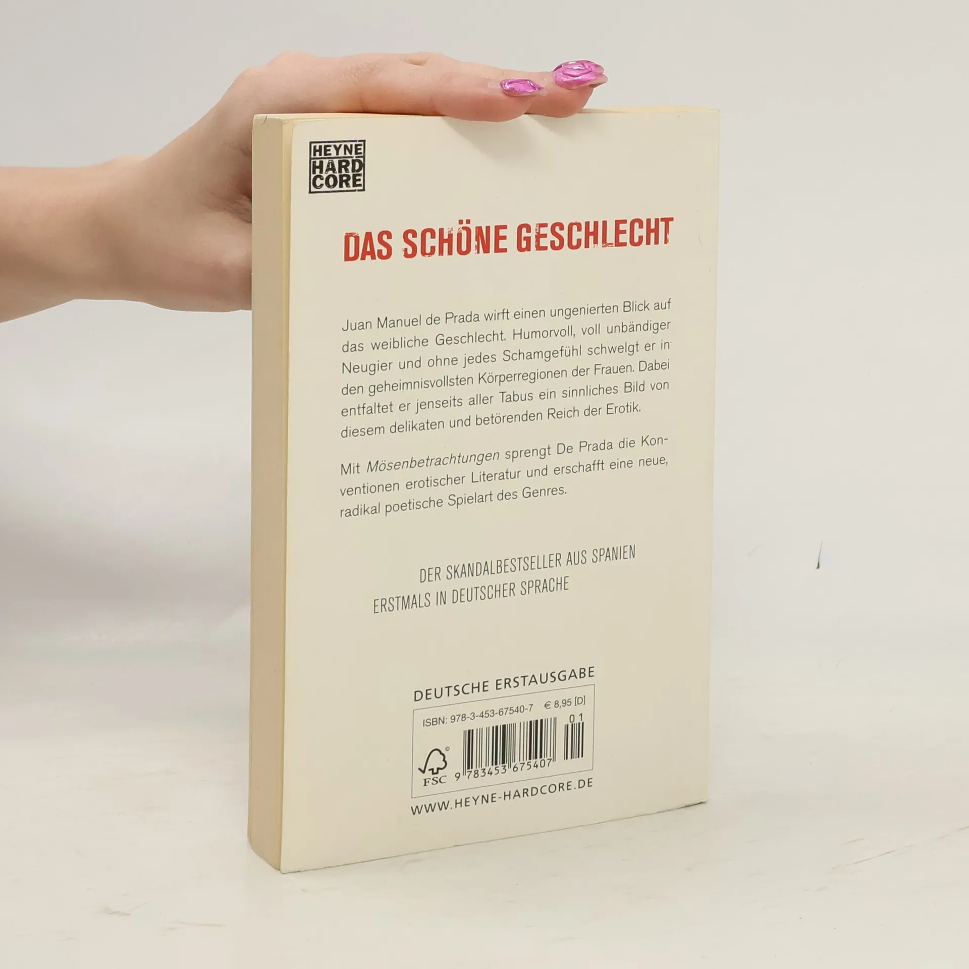 Der Skandalbestseller aus Spanien Juan Manuel de Prada wirft einen ungenierten Blick auf das weibliche Geschlecht. Humorvoll, voll unbändiger Neugier und ohne jedes Schamgefühl schwelgt er in den geheimnisvollsten Körperregionen der Frauen. Dabei entfaltet er ein sinnliches Bild von diesem delikaten und betörenden Reich der Erotik. Jenseits aller Tabus. Mit „Mösenbetrachtungen“ sprengt de Prada die Konventionen erotischer Literatur und erschafft eine neue, radikal poetische Spielart des Genres. • Dieses Buch ist eine literarische Huldigung des weiblichen Körpers • Der Autor wurde mit den drei bedeutendsten spanischen Literaturpreisen ausgezeichnet • Mit einem exklusiven Vorwort des Autors
