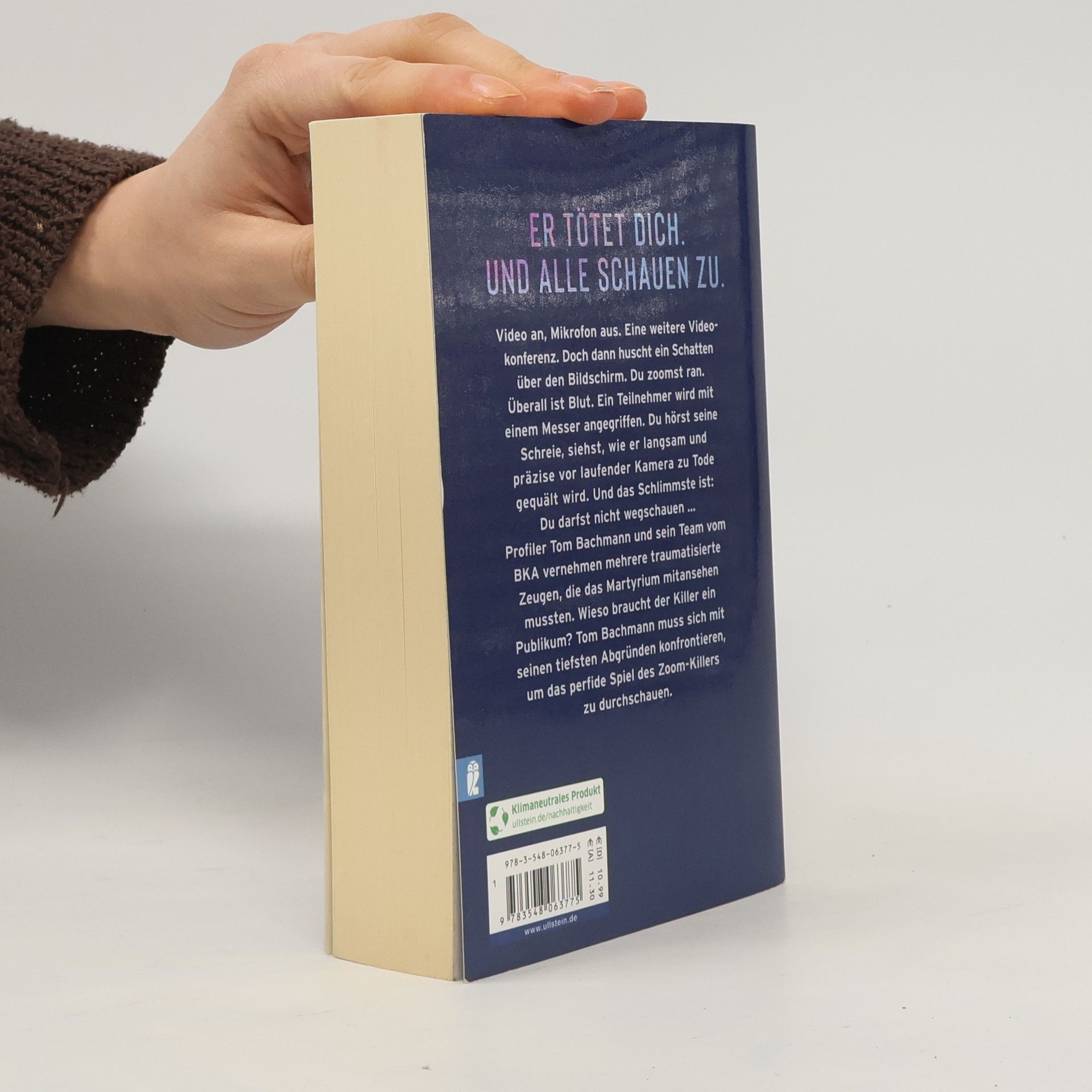 Er tötet dich. Und alle schauen zu. Video an, Mikrofon aus. Eine weitere Videokonferenz. Doch dann huscht ein Schatten über den Bildschirm. Du zoomst ran – und plötzlich ist überall Blut. Ein Teilnehmer wird mit einem Messer angegriffen. Du hörst seine Schreie, siehst wie er langsam und präzise vor laufender Kamera gequält wird. Und das Schlimmste ist: Du darfst nicht wegschauen... „Seelenleser“ Tom Bachmann und sein Team vom BKA vernehmen mehrere traumatisierte Zeugen, die mitansehen mussten, wie ihr Kollege zu Tode gefoltert wurde. Doch wieso braucht der Killer ein Publikum? Bachmann, der als Profiler mit den schlimmsten Psychopathen zu tun hatte, muss sich mit seinen eigenen Abgründen konfrontieren, um das perfide Spiel des Zoom-Killers zu durchschauen. Für alle, die den Nervenkitzel suchen