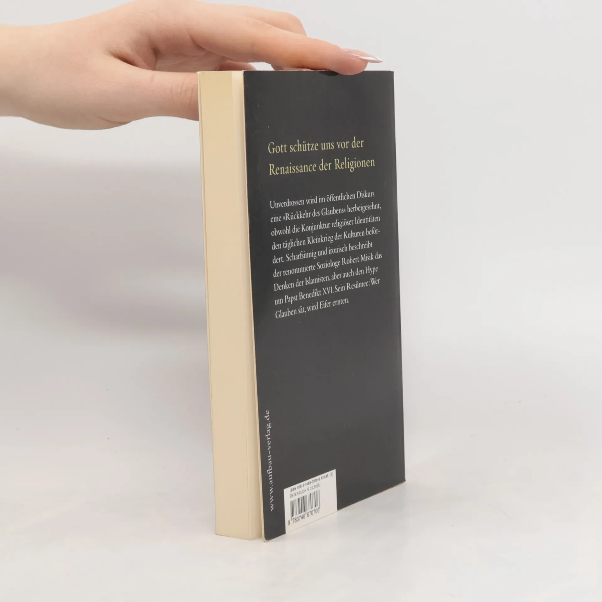 Gott schütze uns vor der Renaissance der Religionen Unverdrossen wird im öffentlichen Diskurs eine "Rückkehr des Glaubens" herbeigesehnt, obwohl die Konjunktur religiöser Identitäten den täglichen Kleinkrieg der Kulturen befördert. Scharfsinnig und ironisch beschreibt der renommierte Soziologe Robert Misik das Denken der Islamisten, aber auch den Hype um Papst Benedikt XVI. Sein Resümee: Wer Glauben sät, wird Eifer ernten. Ohne übertriebene Rücksichtnahme auf religiöse Gefühle liefert Robert Misik eine aktuelle, provokante und humorvolle Religionskritik. Karl Marx glaubte noch, dass Religionen Opium des Volkes sind, ein Beruhigungsmittel, um die Härten des Lebens zu ertragen. Heute wissen wir: Sie sind eher das Aufputschmittel der Völker. Mit Religionen werden - trotz aller Liebesgebote und Toleranz-Zitate in den Heiligen Büchern - Menschen zu Fundamentalisten gemacht. Ohne übertriebene Rücksichtnahme auf religiöse Gefühle liefert Robert Misik eine aktuelle, provokante und humorvolle Religionskritik. Sein Buch plädiert für einen entspannten, doch prinzipienstarken Laizismus. Dessen Leitlinie kann nur sein: Jeder soll glauben, was ihm Spaß macht, aber er soll andere gefälligst nicht damit belästigen. Und er soll nicht Staat und Politik für sich einspannen.