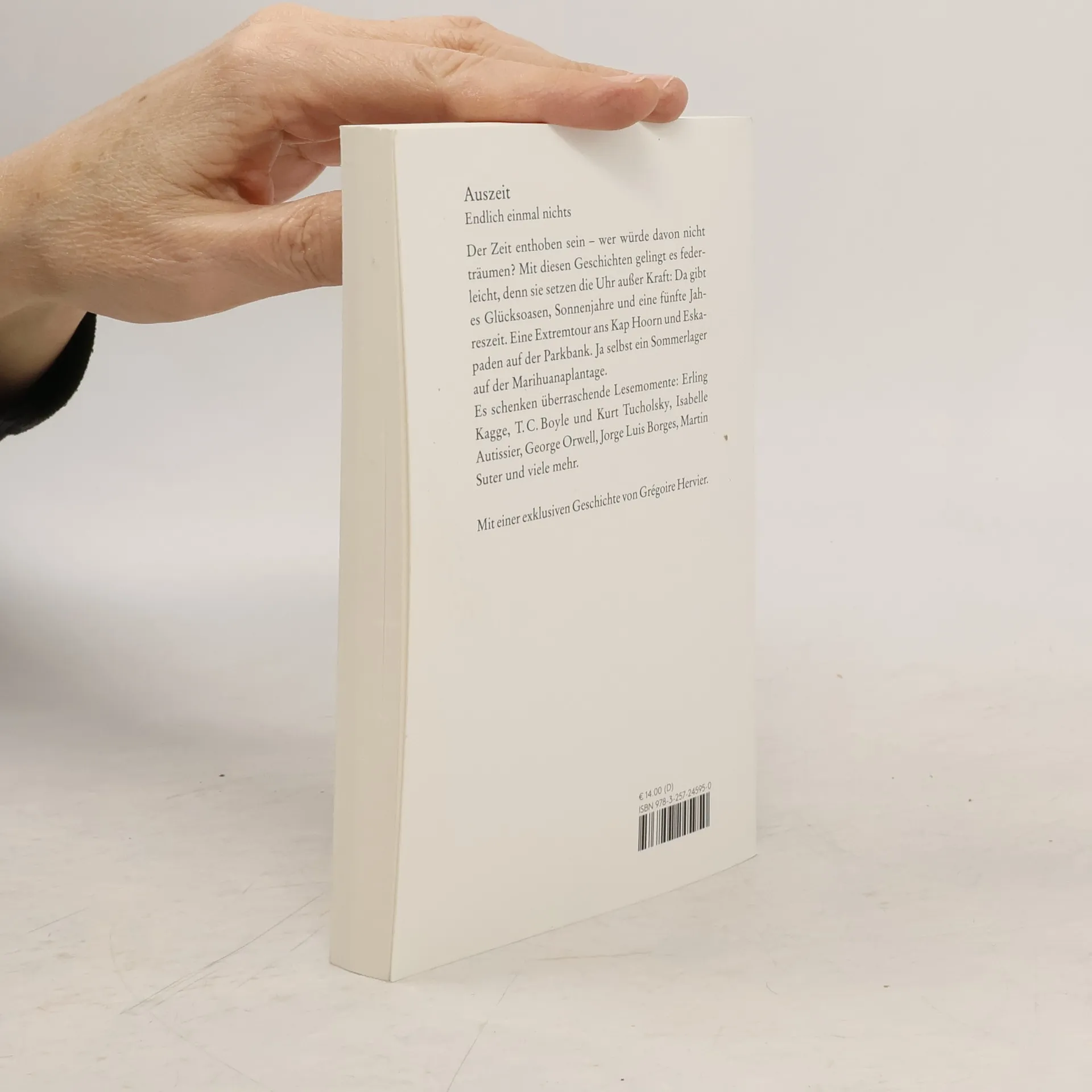 Der Zeit enthoben sein – wer würde davon nicht träumen? Mit diesen Geschichten gelingt es federleicht, denn sie setzen die Uhr außer Kraft: Da gibt es Glücksoasen, Sonnenjahre und eine fünfte Jahreszeit. Eine Extremtour ans Kap Hoorn und Eskapaden auf der Parkbank. Ja selbst ein Sommerlager auf der Marihuanaplantage. Es schenken überraschende Lesemomente: Erling Kagge, T. C. Boyle und Kurt Tucholsky, Isabelle Autissier, George Orwell, Jorge Luis Borges, Martin Suter und viele mehr. Mit einer exklusiven Geschichte von Grégoire Hervier