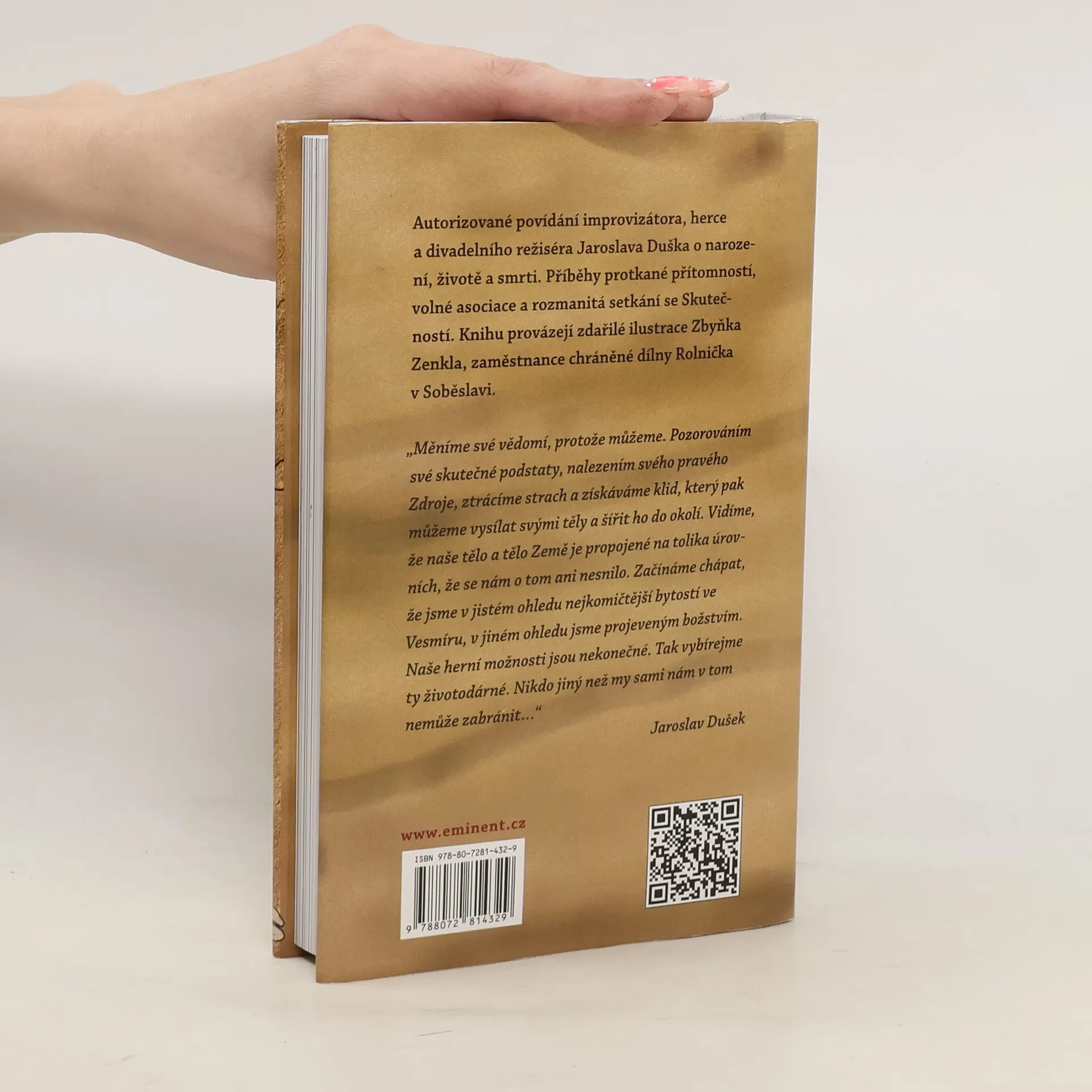 Autorizované povídání známého herce Jaroslava Duška o narození, životě a smrti. Příběhy protkané přítomností, volné asociace a rozmanitá setkání se Skutečností. Knihu provázejí zdařilé ilustrace Zbyňka Zenkla, zaměstnance chráněné dílny Rolnička v Soběslavi.