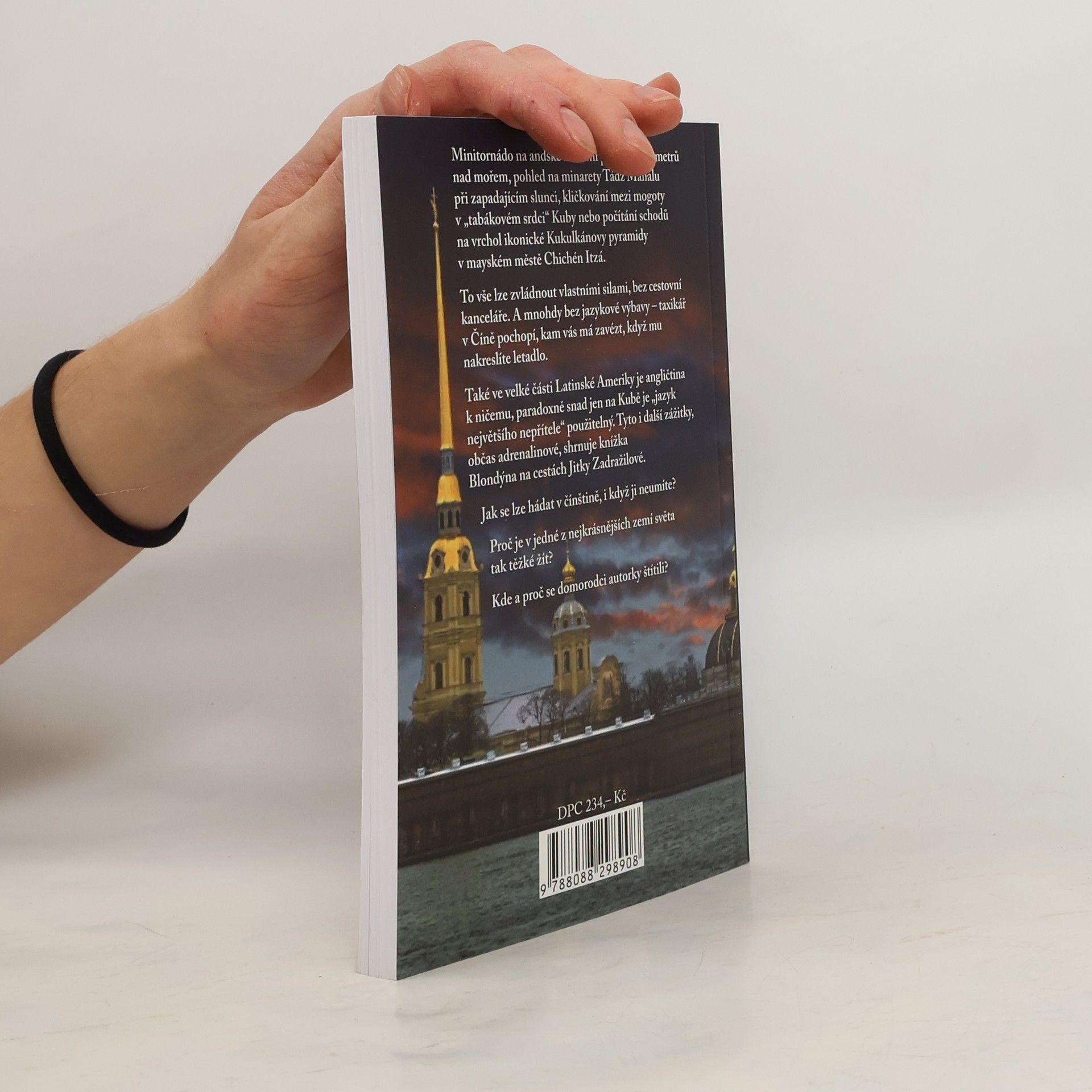 Minitornádo na andské náhorní plošině 4000 metrů nad mořem, pohled na minarety Tádžmahalu při zapadajícím slunci, kličkování mezi mogoty v „tabákovém srdci“ Kuby nebo počítání schodů na vrchol ikonické Kukulkánovy pyramidy v mayském městě Chichén Itzá. To vše lze zvládnout vlastními silami, bez cestovní kanceláře. A mnohdy bez jazykové výbavy – taxikář v Číně pochopí, kam vás má zavézt, když mu nakreslíte letadlo. Také ve velké části Latinské Ameriky je angličtina k ničemu, paradoxně snad jen na Kubě je „jazyk největšího nepřítele“ použitelný. Tyto i další zážitky, občas adrenalinové, shrnuje knížka Blondýna na cestách Jitky Zadražilové. Jak se lze hádat v čínštině, i když ji neumíte? Proč je v jedné z nejkrásnějších zemí světa tak těžké žít? Kde a proč se domorodci autorky štítili?