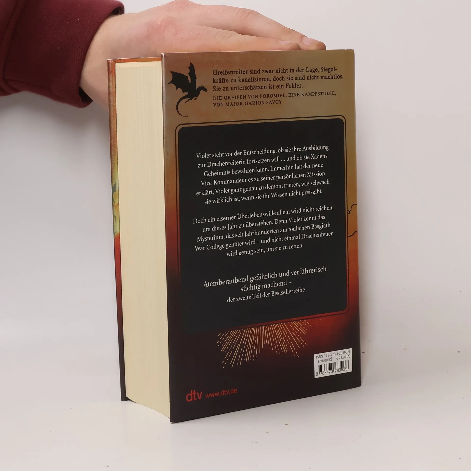 Wem kannst du vertrauen, wenn der größte Verräter dein eigenes Herz ist? In wunderschöner Ausstattung mit veredeltem Schutzumschlag, gestaltetem Einband und farbigen Karten im Innenteil. Violet steht vor der Entscheidung, ob sie zum tödlichen Basgiath War College zurückkehren und Xaden vertrauen kann. Während alle erwarteten, dass sie ihr erstes Jahr dort nicht überlebt, hat sie es geschafft. Doch das richtige Training beginnt erst jetzt, und Violet fragt sich, wie sie die brutalen Herausforderungen überstehen soll. Ihr größtes Problem ist der neue Vizekommandeur, der sie brechen will – es sei denn, sie verrät den Mann, den sie liebt. Trotz ihres schwächeren Körpers hat Violet ihren Verstand und eisernen Willen. Die wichtigste Lektion, die sie gelernt hat, scheint von anderen vergessen zu werden: Drachenreiter machen ihre eigenen Regeln. Dieses Buch ist auch in einer Ausgabe mit Farbschnitt erhältlich. Die Flammengeküsst-Reihe umfasst mehrere Bände, die nicht unabhängig voneinander lesbar sind. Die Geschichten bieten ein unwiderstehliches Abenteuer und eine epische Liebesgeschichte, die Leser fesseln und nicht loslassen.