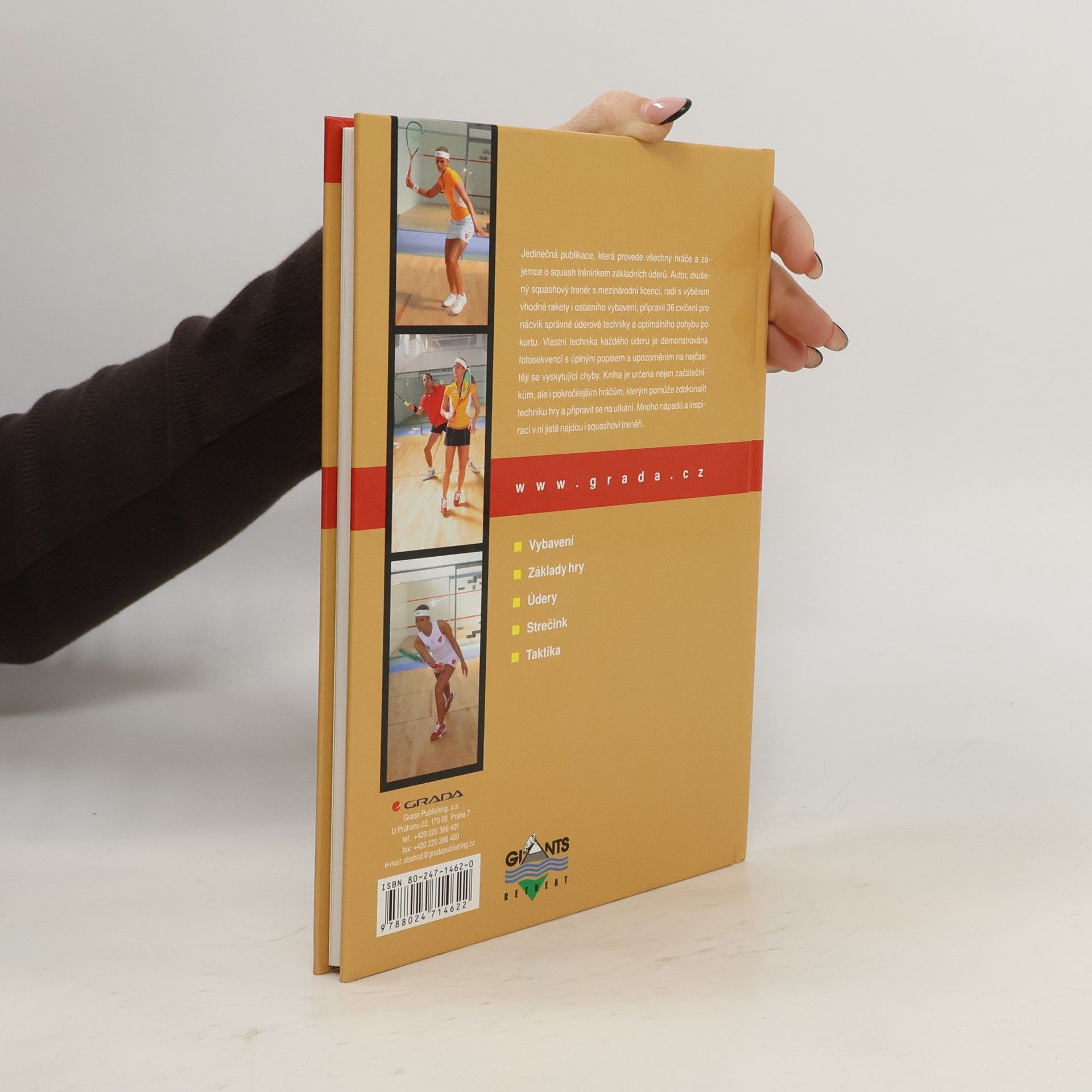 Jedinečná publikace, která provede všechny hráče a zájemce o squash tréninkem základních úderů. Autor, zkušený squashový trenér s mezinárodní licencí, radí s výběrem vhodné rakety i ostatního vybavení a připravil více než 50 cvičení pro nácvik správné úderové techniky a optimálního pohybu po kurtě. Vlastní technika každého úderu je demonstrována fotosekvencí s úplným popisem a upozorněním na nejčastěji se vyskytující chyby. Kniha je určena nejen začátečníkům, ale i pokročilejším hráčům, kterým pomůže zdokonalit techniku hry a připravit se na utkání. Mnoho nápadů a inspirací v ní jistě naleznou i squashoví trenéři.