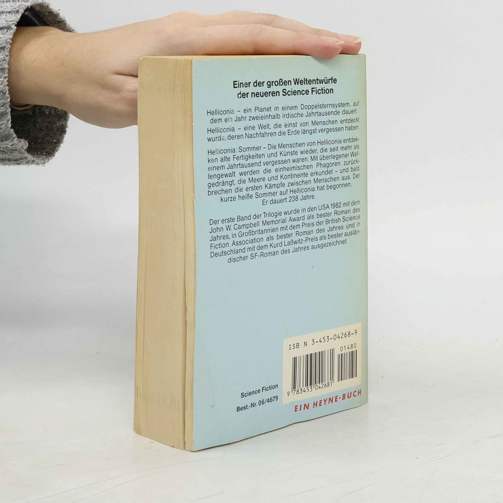 Einer der großen Weltentwürfe der neueren Science Fiction Helliconia - ein Planet in einem Doppelsternsystem, auf dem ein Jahr zweieinhalb irdische Jahrtausende dauert. Helliconia - eine Welt, die einst von Menschen entdeckt wurde, deren Nachfahren die Erde längst vergessen haben. Helliconia: Sommer - Die Menschen von Helliconia entdecken alte Fertigkeiten und Künste wieder, die seit mehr als einem Jahrtausend vergessen waren. Mit überlegener Waffengewalt werden die einheimischen Phagoren zurückgedrängt, die Meere und Kontinente erkundet - und bald brechen die ersten Kämpfe zwischen Menschen aus. Der kurze heiße Sommer auf Helliconia hat begonnen. Er dauert 238 Jahre. Der erste Band der Trilogie wurde in den USA 1982 mit dem John W. Campbell Memorial Award als bester Roman des Jahres, in Großbritannien mit dem Preis der British Science Fiction Association als bester Roman des Jahres und in Deutschland mit dem Kurd Laßwitz-Preis als bester ausländischer SF-Roman des Jahres ausgezeichnet.