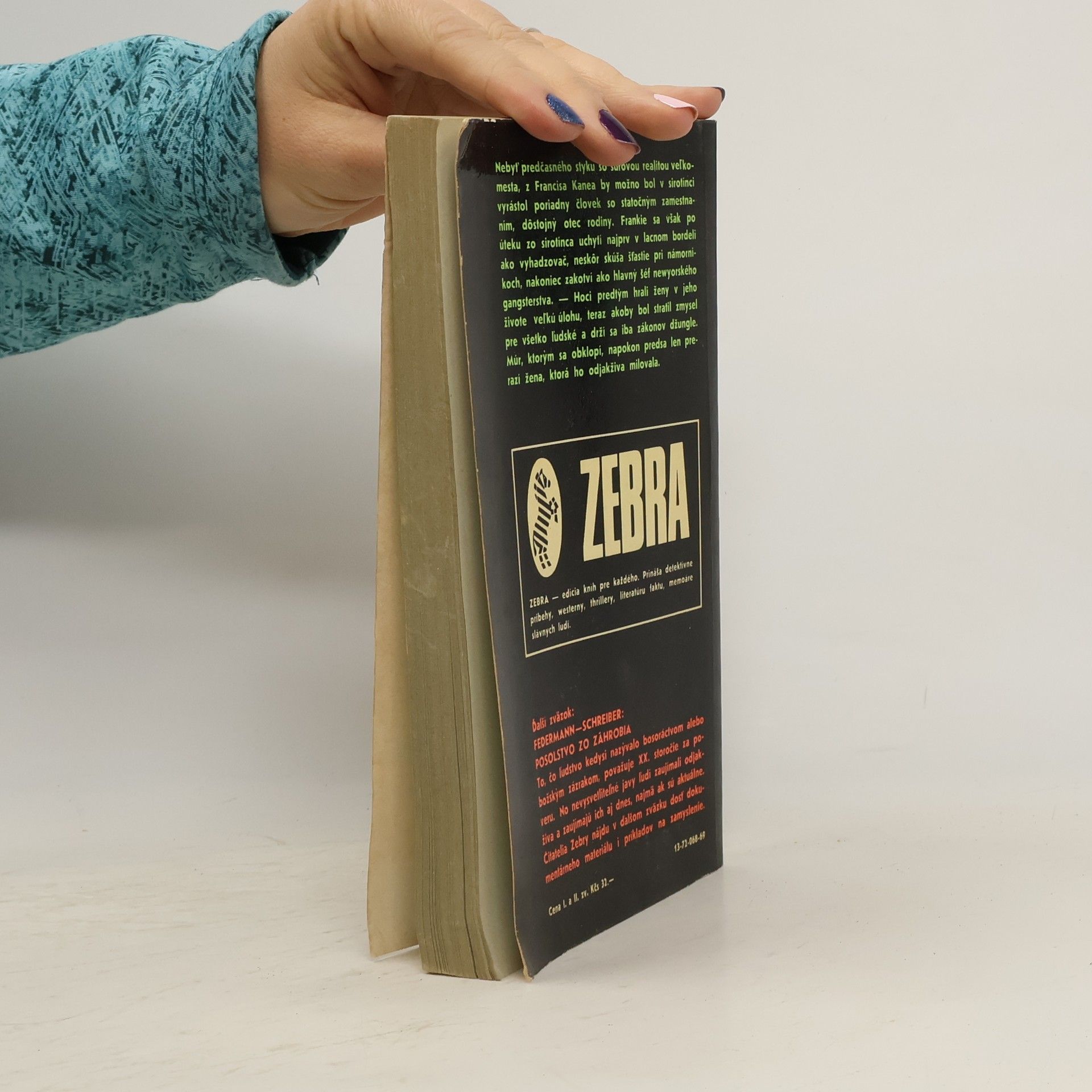 Nebyť predčasného styku so surovou realitou veľkomesta, z Francisa Kanea by možno bol v sirotinci vyrástol poriadny človek so statočným zamestnaním, dôstojný otec rodiny. Frankie sa však po úteku zo sirotinca uchytí najprv v lacnom bordeli ako vyhadzovač, neskôr skúša šťastie pri námorníkoch, nakoniec zakotví ako hlavný šéf newyorského gangsterstva. Hoci pred tým hrali v jeho živote veľkú úlohu ženy, teraz akoby bol stratil zmysel pre všetko ľudské a drží sa iba zákonov džungle. Múr, ktorým sa obklopí, napokon predsa len prerazí žena, ktorá ho odjakživa milovala. Sv. 1. 1969. 253 s. -- sv. 2. 1971. 231 s.
