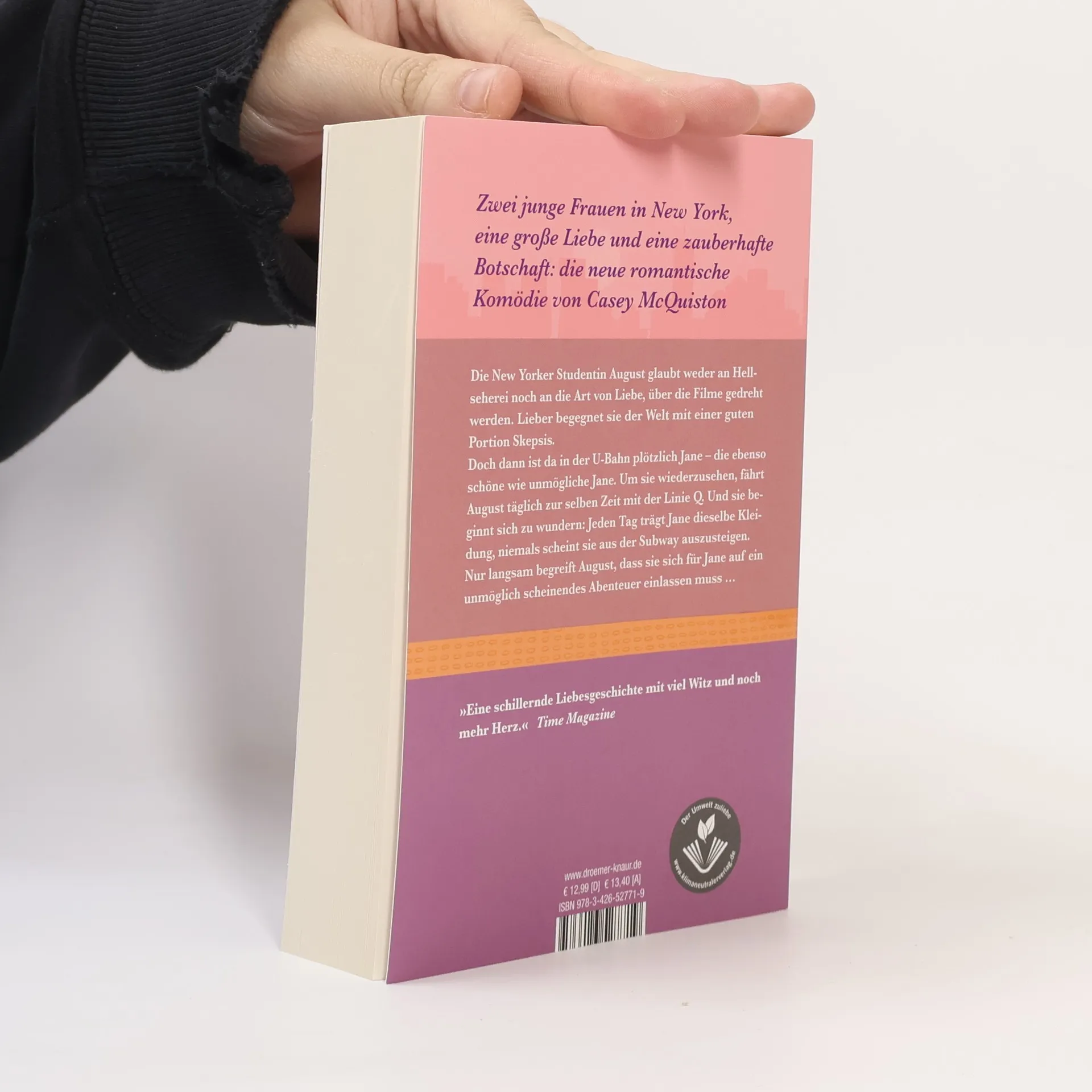 Zwei junge Frauen in New York, eine große Liebe und eine zauberhafte Botschaft: die neue unkonventionelle romantische Komödie von Casey McQuiston Die New Yorker Studentin August glaubt weder an Hellseherei, noch an die Art von Liebe, über die Filme gedreht werden. Und ganz sicher glaubt sie nicht, dass ihre WG voller liebenswerter Nerds daran etwas ändern wird – oder gar ihre Nachtschichten in einem Pancake House, das seit den 70er Jahren Kultstatus genießt. Doch dann ist da in der U-Bahn plötzlich Jane – die ebenso schöne wie unmögliche Jane. Um sie wiederzusehen, fährt August täglich zur selben Zeit mit der Linie Q. Und sie beginnt sich zu wundern: Jeden Tag trägt Jane dieselbe Kleidung, niemals scheint sie aus der U-Bahn auszusteigen. Nur langsam begreift August, dass sie sich für Jane auf ein unmöglich scheinendes Abenteuer einlassen muss … »Casey McQuiston gelingt es wieder, eine Welt zu erschaffen, die man am liebsten gar nicht mehr verlassen möchte – voller wunderbarer Charaktere und mit einem queeren Paar, das man sofort ins Herz schließt.« Meryl Wilsner Wenn die Liebe U-Bahn fährt: einfühlsam, humorvoll und ein kleines bisschen übersinnlich begeistert Casey McQuiston, New-York-Times-Bestseller-Autor*in von »Royal Blue«, auch mit ihrer zweiten romantischen Komödie.
