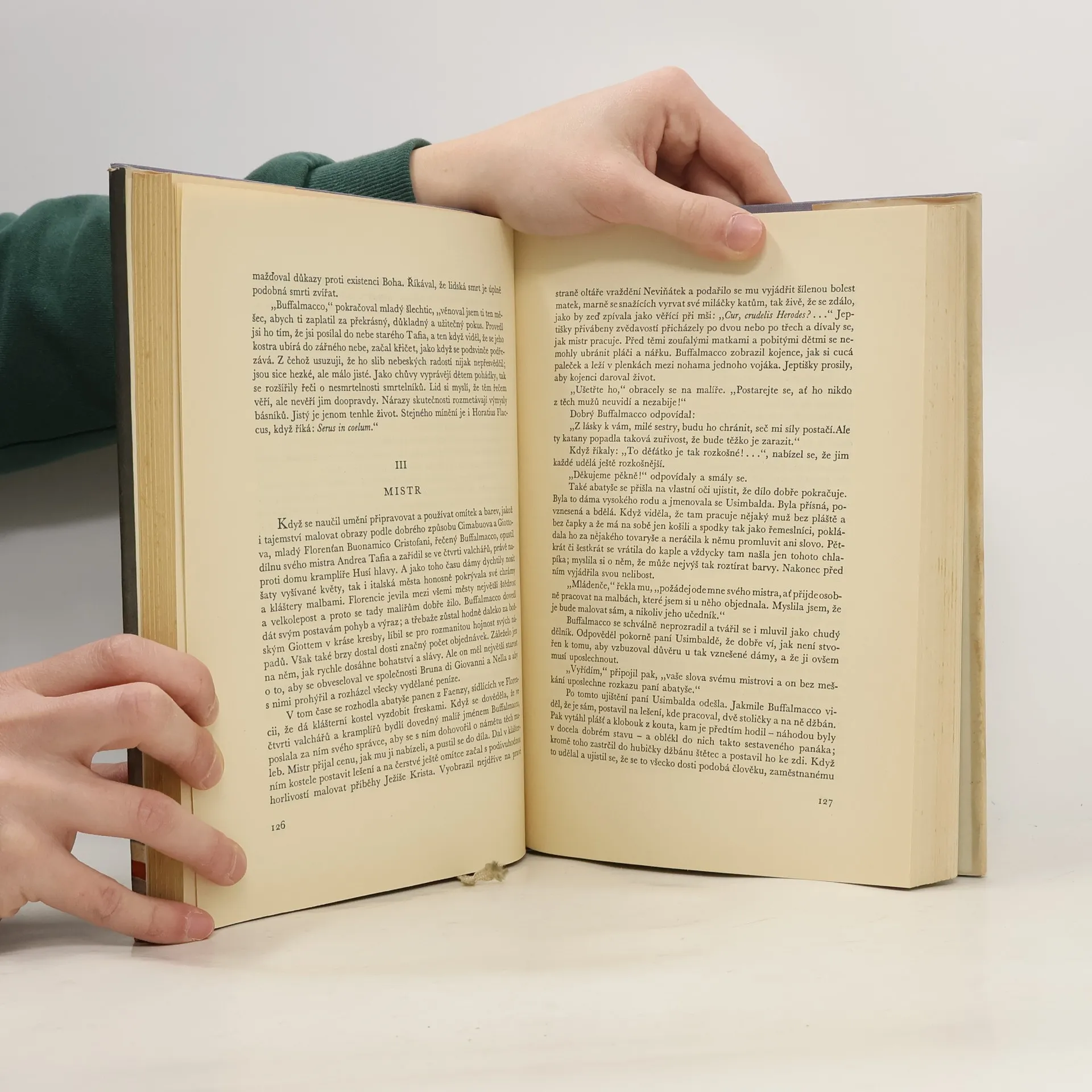Povídky zařazené do výboru jsou čerpány ze sedmi sbírek: Pod ochranou musy Clio (Pěvec Kymé, Atrebat Komm), Povídky Jakuba Kuchtíka (Olivierův trumf, Stračin zázrak, Paní z Pikardie, z Poitiersu, z Toursu, z Lyonu a z Paříže, Správně pochopené naučení), Baltazar (Baltazar, Laeta Acilia), Perleťová skřínka (Místodržitel judský, Kejklíř Matky Boží, Paměti dobrovolníka, Olověny vojáček), Sedm žen Modrovousových (Mikuláš, Košíle), Studně svaté Kláry (Rozmarný Buffalmacco, Lucifer) a Crainquebille (Nestranní soudcové, Pan Tomáš, Krádež v domácnosti, Emil, Edmunda neboli Milodar na pravém místě, Crainquebille). Výbor je seřazen chronologicky a snaží se postihnout Franceův názor na jednotlivé dějinné úseky a události. Současně osvětluje autorův vývoj od humanistického filosofa, shlížejícího skepticky a shovívavě na svět a lidské slabosti, až k uvědomělému bojovníku za lepší uspořádání společnosti, tepajícího sžíravým výsměchem pokryteckou morálku, buržoazní spravedlnost a nejposvátnější měšťácké instituce