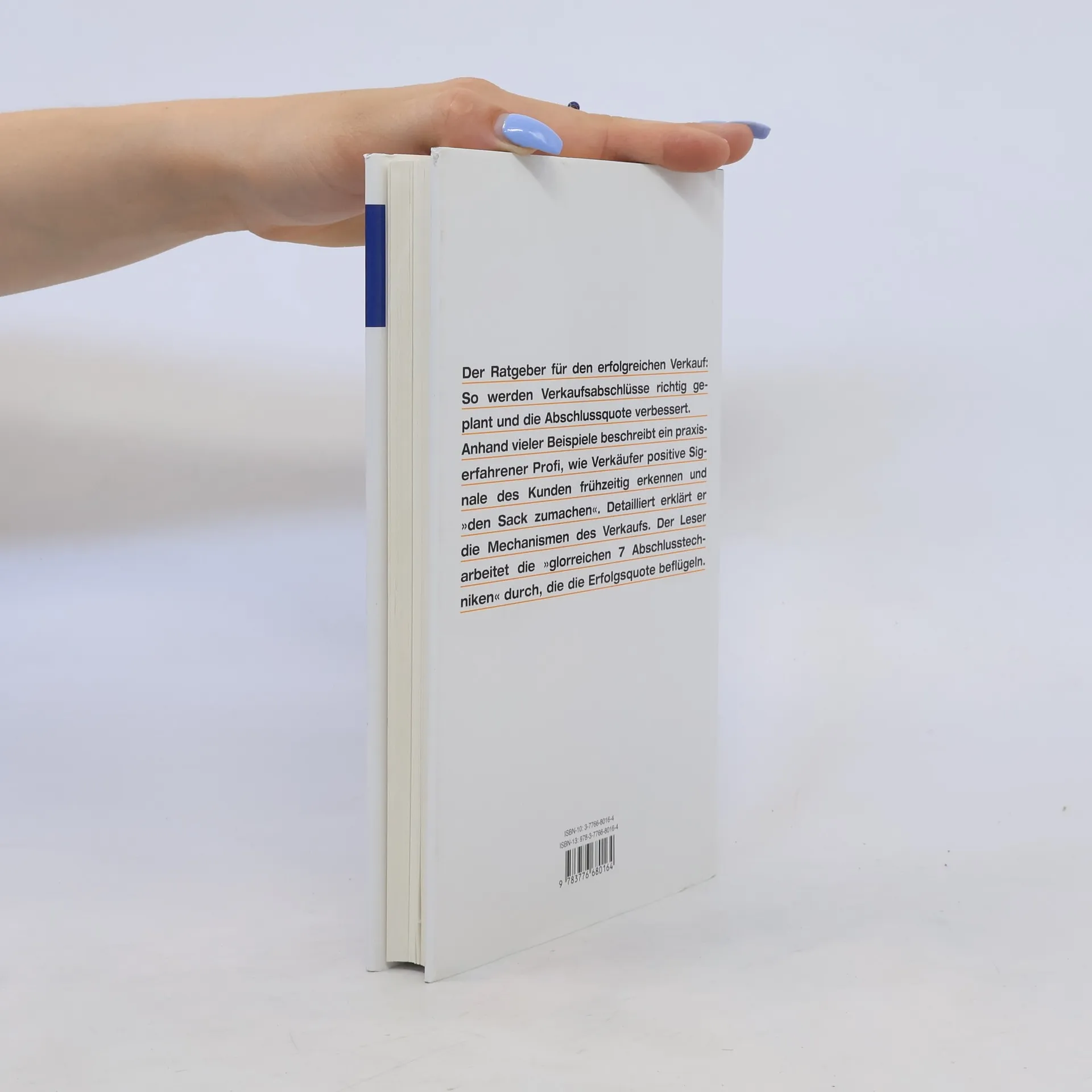 Ratgeber für den erfolgreichen Verkauf: So werden Verkaufsabschlüsse richtig geplant und die Abschlussquote verbessert. Die einzelnen Schritte auf dem Weg zum positiven Verkaufsabschluss: Niklas Tripolt beschreibt Stolpersteine, durch die Verkäufer Aufträge verlieren, zeigt, wie Barrieren zwischen Kunde und Verkäufer entstehen und welche inneren und äußeren Ursachen am Nichterfolg Schuld haben. Anhand vieler Beispiele erklärt er, wie Verkäufer positive Signale des Kunden frühzeitig erkennen und den „Sack zumachen“. Detailliert behandelt er die Mechanismen des Verkaufs. Dabei arbeitet der Leser die „glorreichen 7 Abschlusstechniken“ durch, die die Erfolgsquote beflügeln.