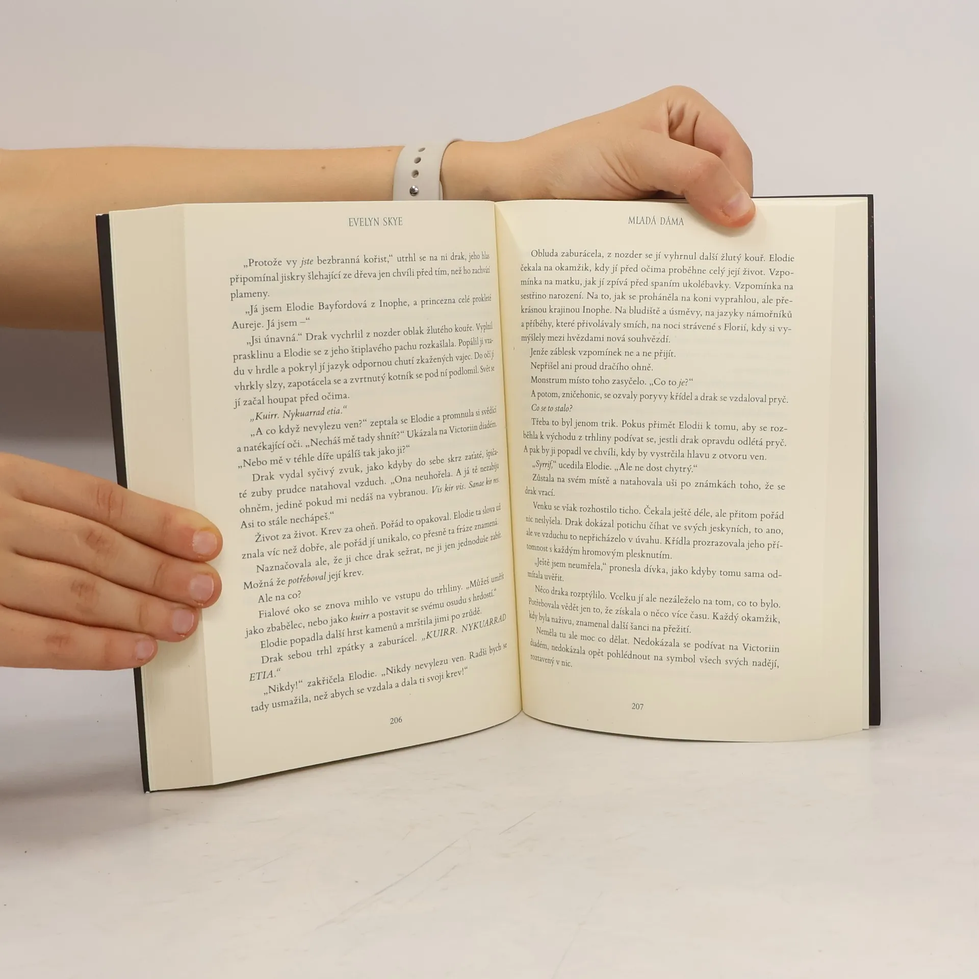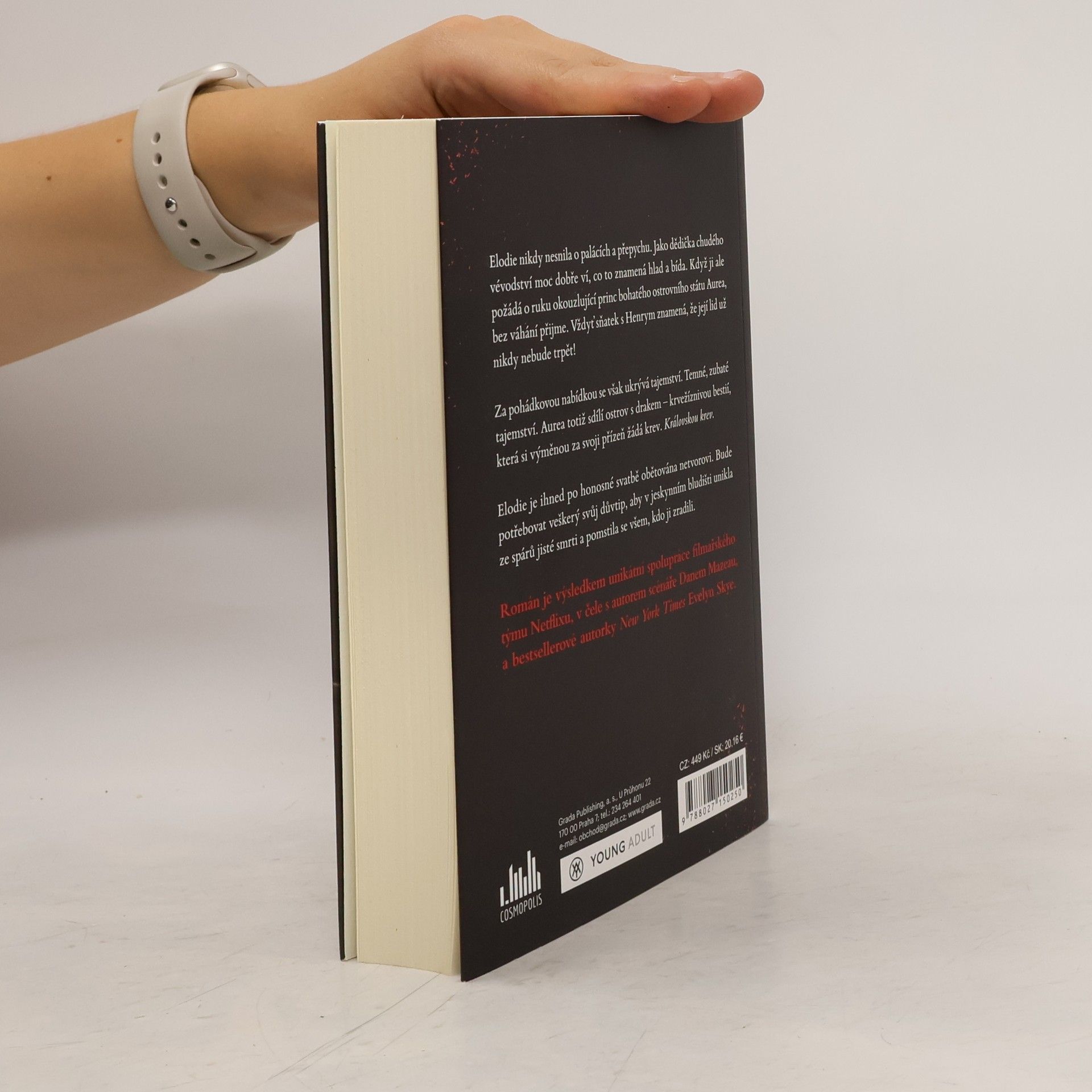 Elodie nikdy nesnila o palácích a přepychu. Jako dědička chudého vévodství moc dobře ví, co to znamená hlad a bída. Když ji ale požádá o ruku okouzlující princ bohatého ostrovního státu Aurea, bez váhání přijme. Vždyť sňatek s Henrym znamená, že její lid už nikdy nebude trpět! Za pohádkovou nabídkou se však ukrývá tajemství. Temné, zubaté tajemství. Aurea totiž sdílí ostrov s drakem – krvežíznivou bestií, která si výměnou za svoji přízeň žádá krev. Královskou krev. Elodie je ihned po honosné svatbě obětována netvorovi. Bude potřebovat veškerý svůj důvtip, aby v jeskynním bludišti unikla ze spárů jisté smrti a pomstila se všem, kdo ji zradili. Román je výsledkem unikátní spolupráce filmařského týmu Netflixu, v čele s autorem scénáře Danem Mazeau, a bestsellerové autorky New York Times Evelyn Skye.