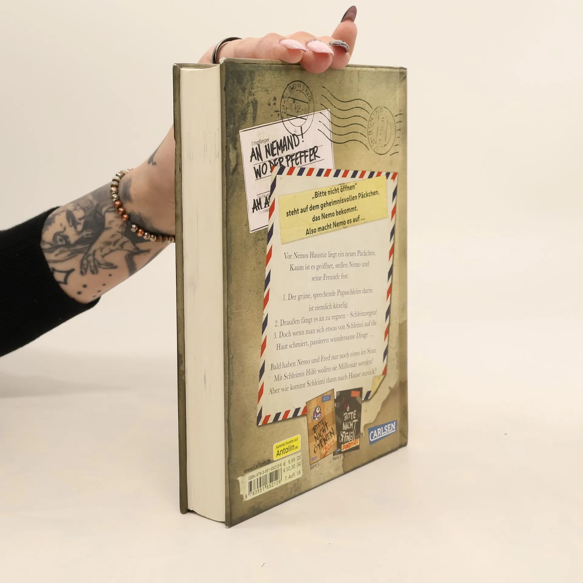 \"Bitte nicht öffnen!\" steht auf dem geheimnisvollen Päckchen, das Nemo bekommt. Also macht Nemo es auf ... BAND 2: Vor Nemos Haustür liegt ein neues Päckchen. Kaum ist es geöffnet, stellen Nemo und seine Freunde fest: 1. Der grüne, sprechende Pupsschleim darin ist ziemlich kitzelig. 2. Draußen fängt es an zu regnen – Schleimregen! 3. Doch wenn man sich etwas von Schleimi auf die Haut schmiert, passieren wundersame Dinge … Bald haben Nemo und Fred nur noch eines im Sinn: Mit Schleimis Hilfe wollen sie Millionär werden! Aber wie kommt Schleimi dann zurück nach Hause? Nach dem Kinderbuch-Bestseller-Erfolg von Band 1 nun endlich da: ein neues lustiges und turbulentes Abenteuer rund um Schule, Freundschaft und ein verlorenes Wesen, das nach Hause will! Voller überraschender Wendungen, Sprachwitz und mit vielen Bildern vom unverwechselbaren Fréderic Bertrand. Das perfekte Buch für Jungs und Mädchen - und ihre Eltern!