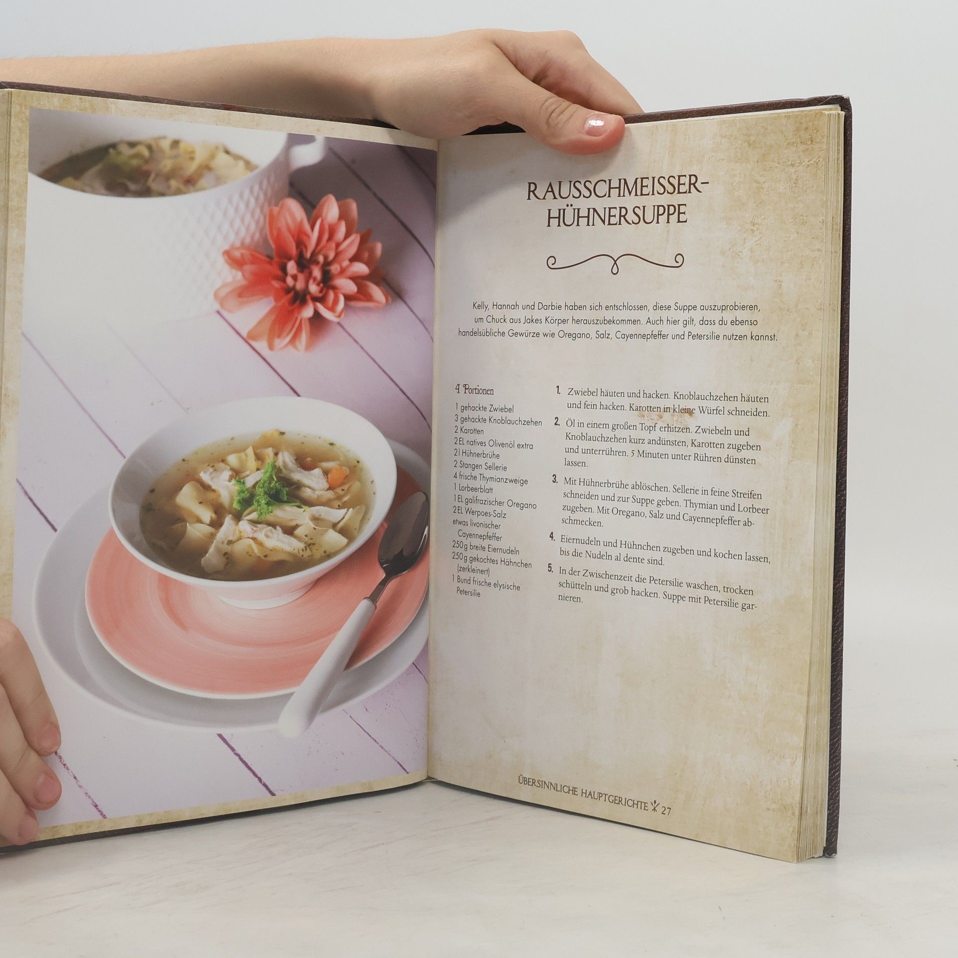 It’s a kind of magic Die Freundinnen Kelly, Darbie und Hannah entdecken auf dem Dachboden ein altes Kochbuch. Als sie Rezepte daraus kochen und backen, stellen sie fest, dass der Verzehr der Speisen magische Folgen hat: Die Haselnusstorte besitzt heilende Kräfte und die Schokotrüffel zwingen den, der sie genießt, die Wahrheit zu sagen. Dieses liebevoll gestaltete Buch versammelt 50 fantastische Gerichte aus der beliebten Serie Das geheimnisvolle Kochbuch, die ganz einfach und ohne viel Aufwand nachgekocht werden können. Und wer weiß, vielleicht wirken die magischen Zutaten ja auch bei uns …
